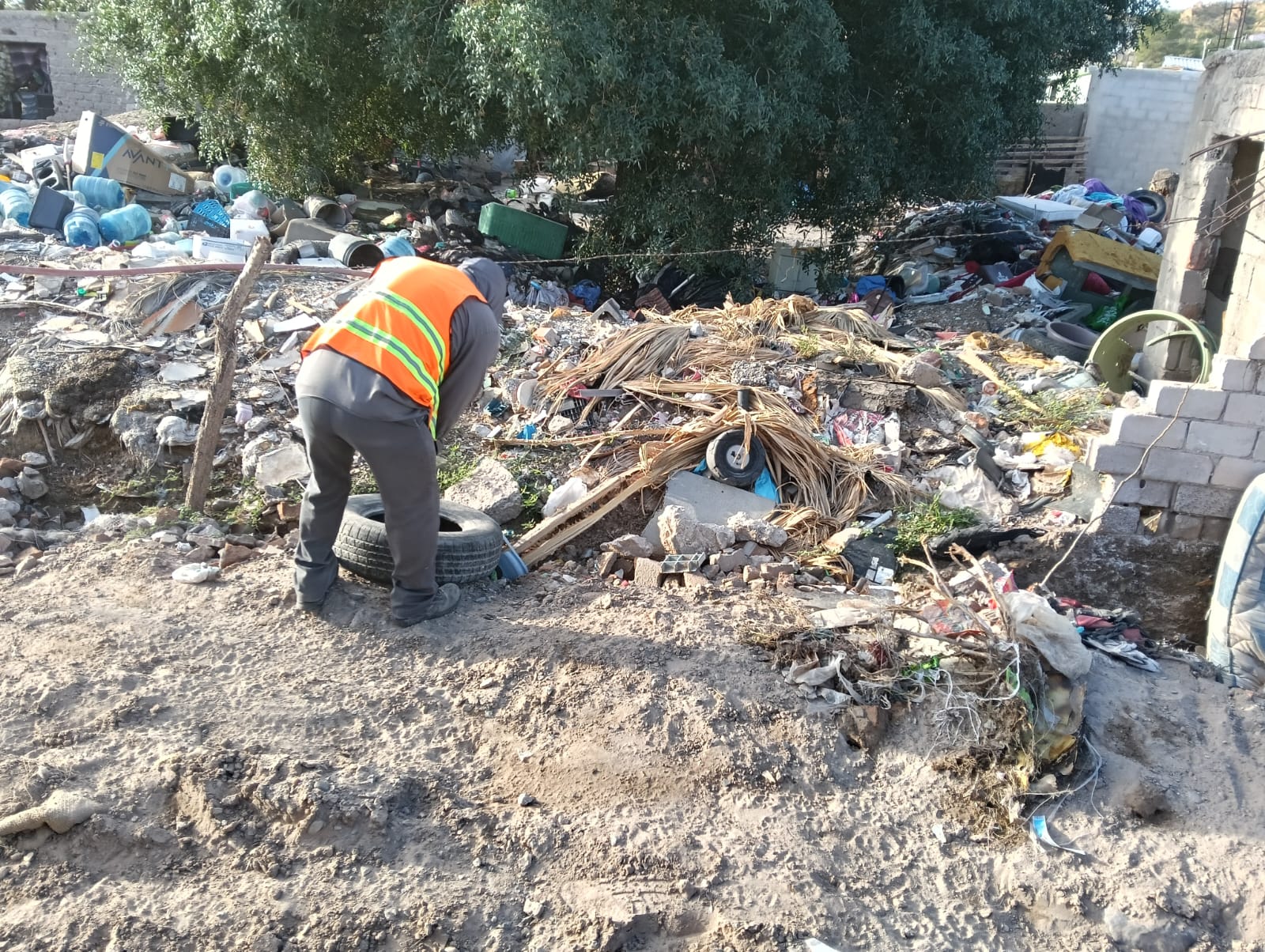 Con el propósito de atender a las familias del norponiente de la ciudad que recientemente fueron afectadas por las lluvias, la Dirección General de Servicios Públicos, a través de la Dirección de Limpia, lleva a cabo distintas labores en la colonia Franja Sara Lugo.