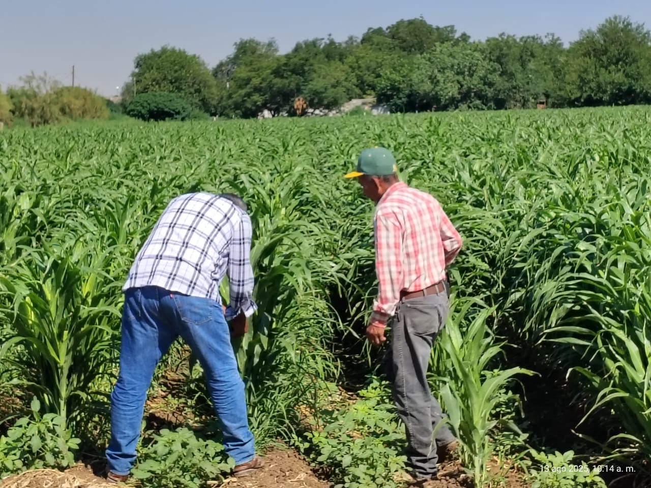 El titular de la Dirección de Desarrollo Rural, Enrique Reyes Córdova, informó que la aplicación de la solución nutritiva ha generado resultados positivos en los cultivos de sorgo forrajero en el Distrito de Riego 009, en el Valle de Juárez.