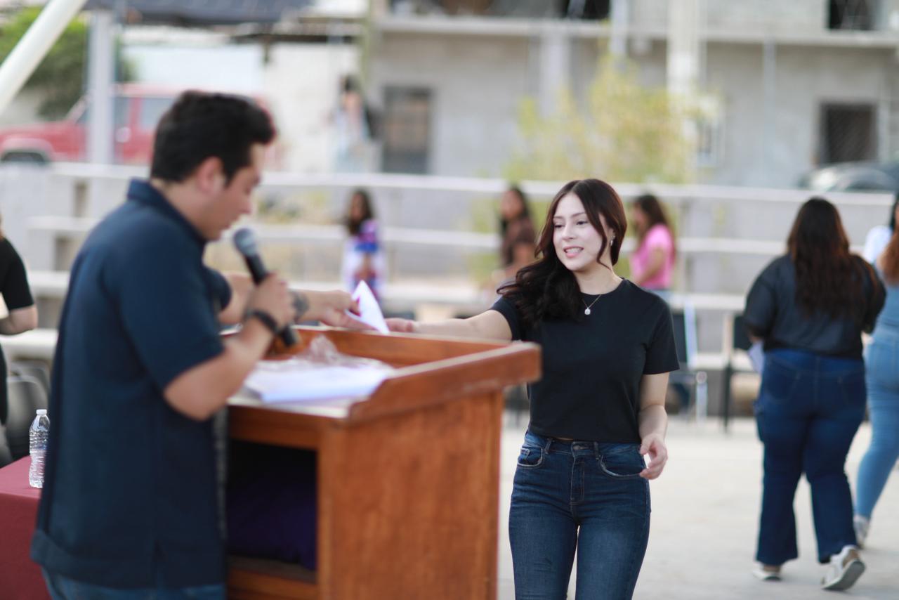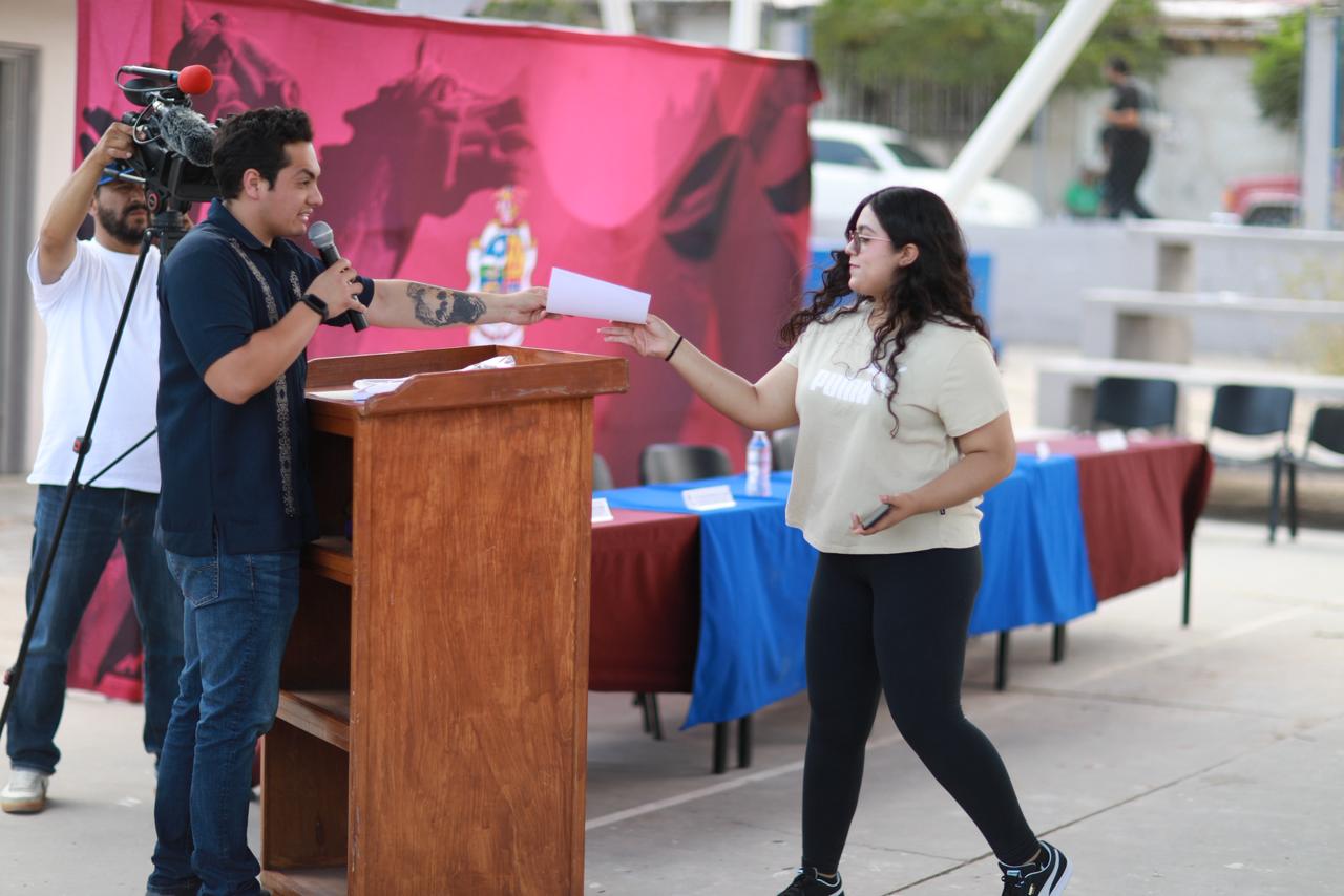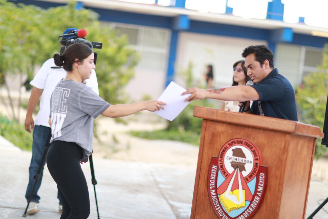 La ceremonia fue encabezada por Luis Osvaldo Rivas García, director general del Instituto Municipal de la Juventud de Juárez y coordinada por Darío Gael Martínez Gómez, de la Jefatura de Bienestar a la Juventud, así como por Julio César López, director general de la Normal.