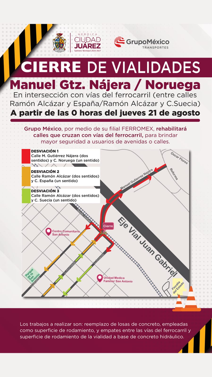 Por lo anterior, se hace un llamado especial a los conductores que circulan por la calle Manuel Gutiérrez Nájera, ya que quienes bajan del Eje Vial Juan Gabriel también resultarán afectados por estas labores.