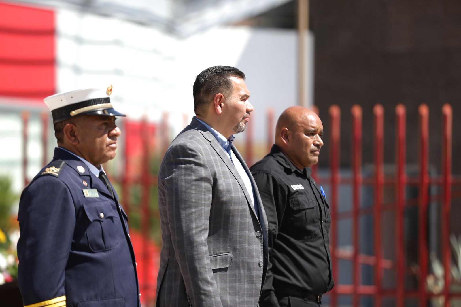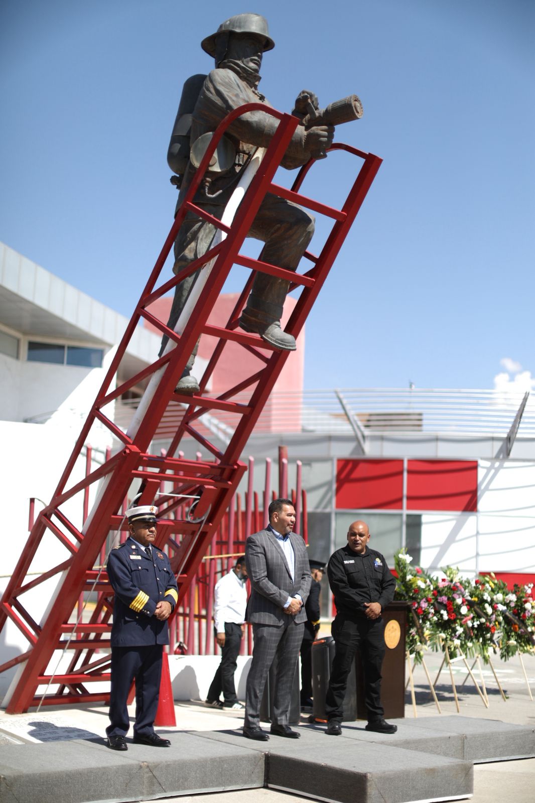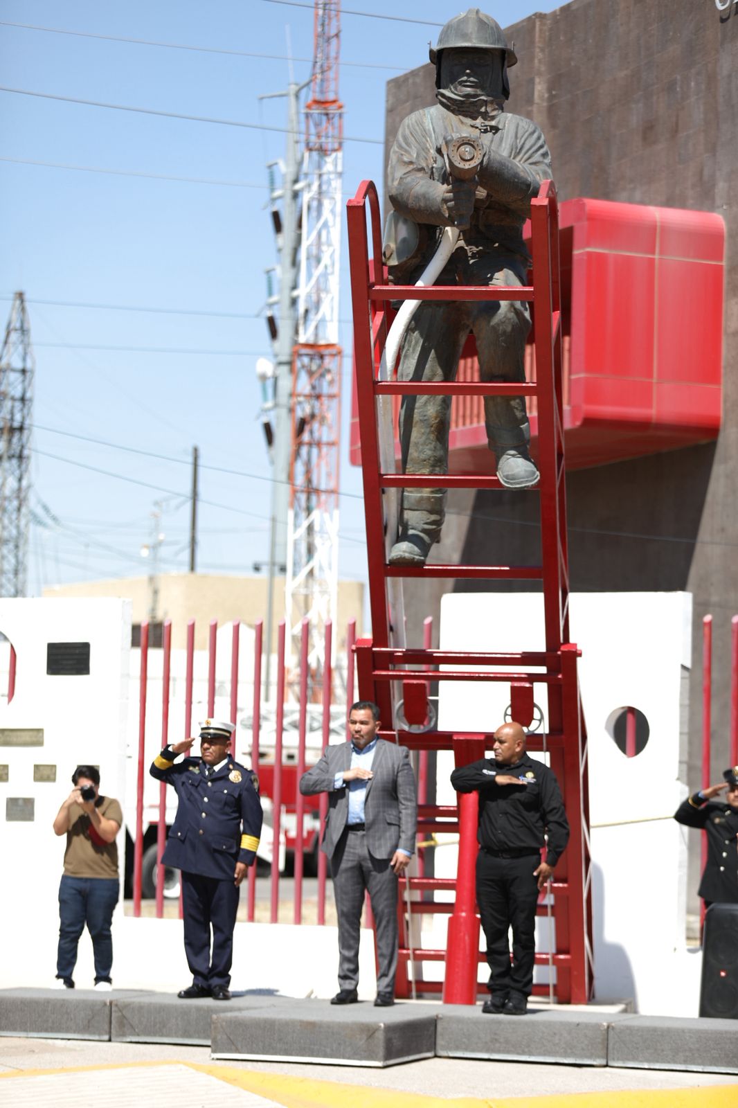El acto se llevó a cabo en el Monumento al Bombero, en la Estación Central de la dependencia, donde el Alcalde estuvo acompañado por el comandante de Bomberos, Jorge Ignacio Fuentes y el director general de Protección Civil, Sergio Rodríguez.