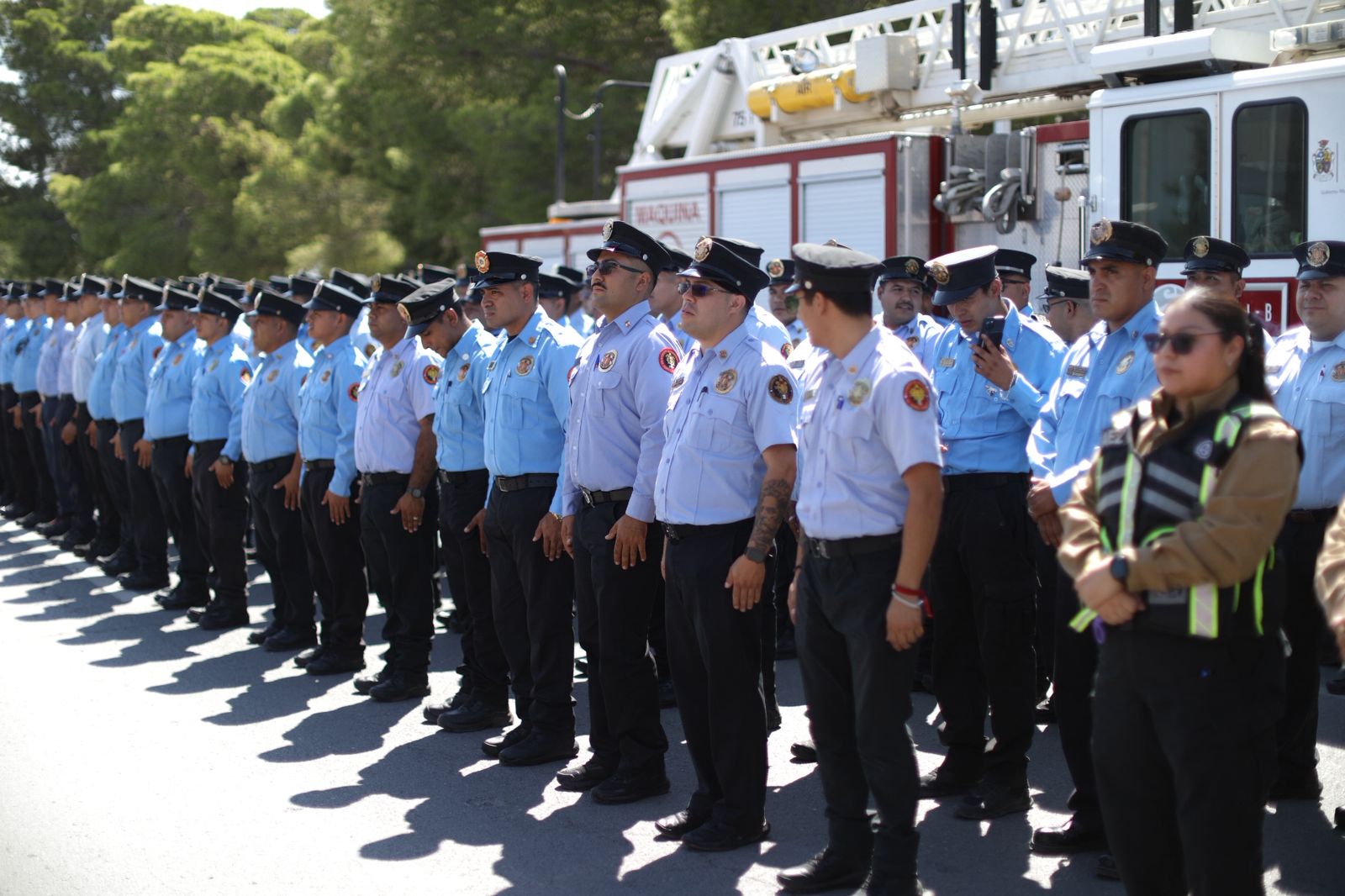 Comentó que este año se otorgó un bono de 10 mil pesos a cada elemento y a partir de enero del 2026 se homologarán los salarios de bomberos con los de los policías de igual rango, como lo instruyó el Presidente Municipal.