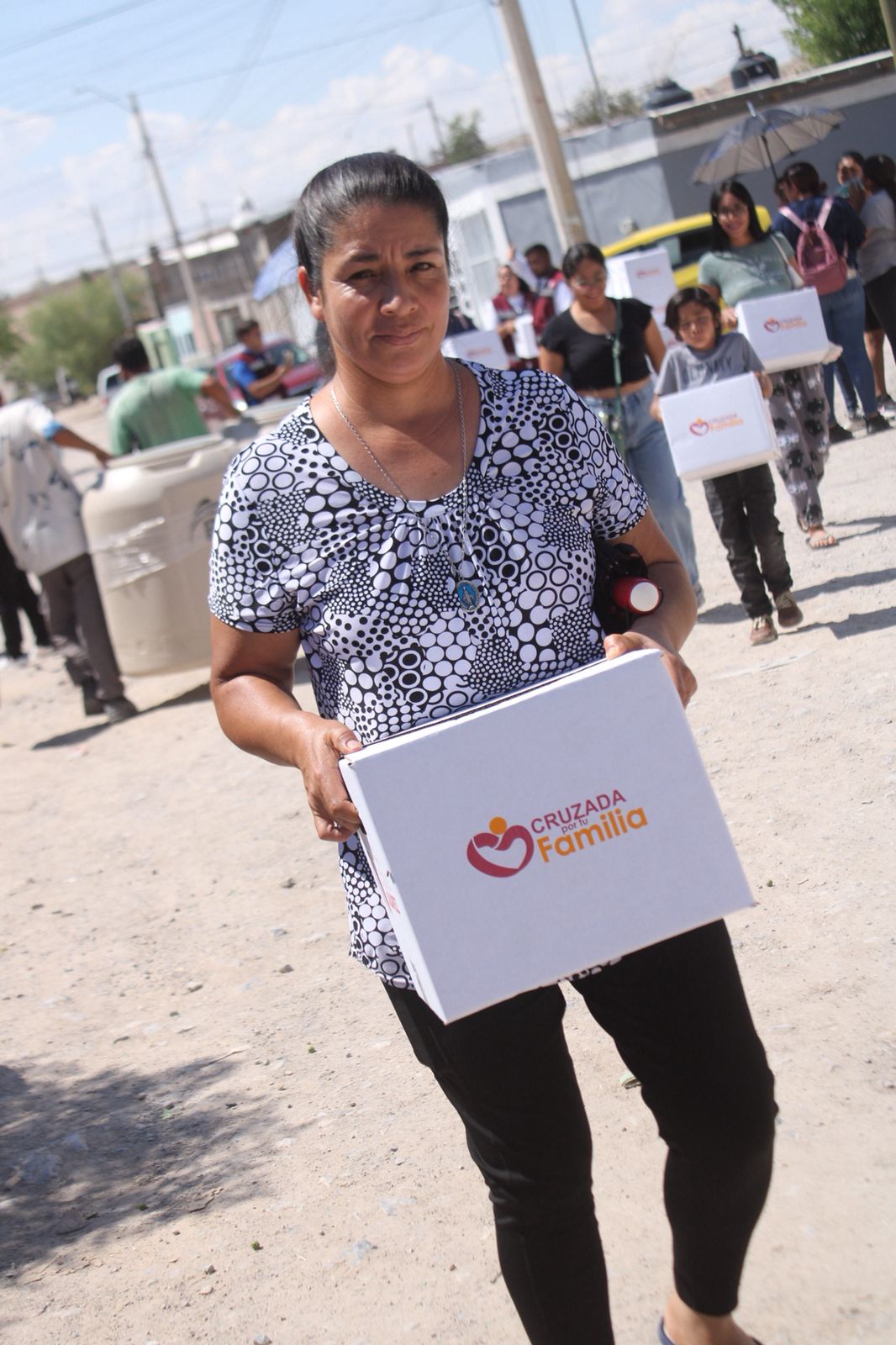 Dijo que las despensas contienen aceite vegetal, arroz, café tostado, azúcar, harina de trigo, pastas, lata de tomate, lata de chiles, sal refinada, fécula de maíz, frijoles, lata de ensalada y concentrado de pollo.