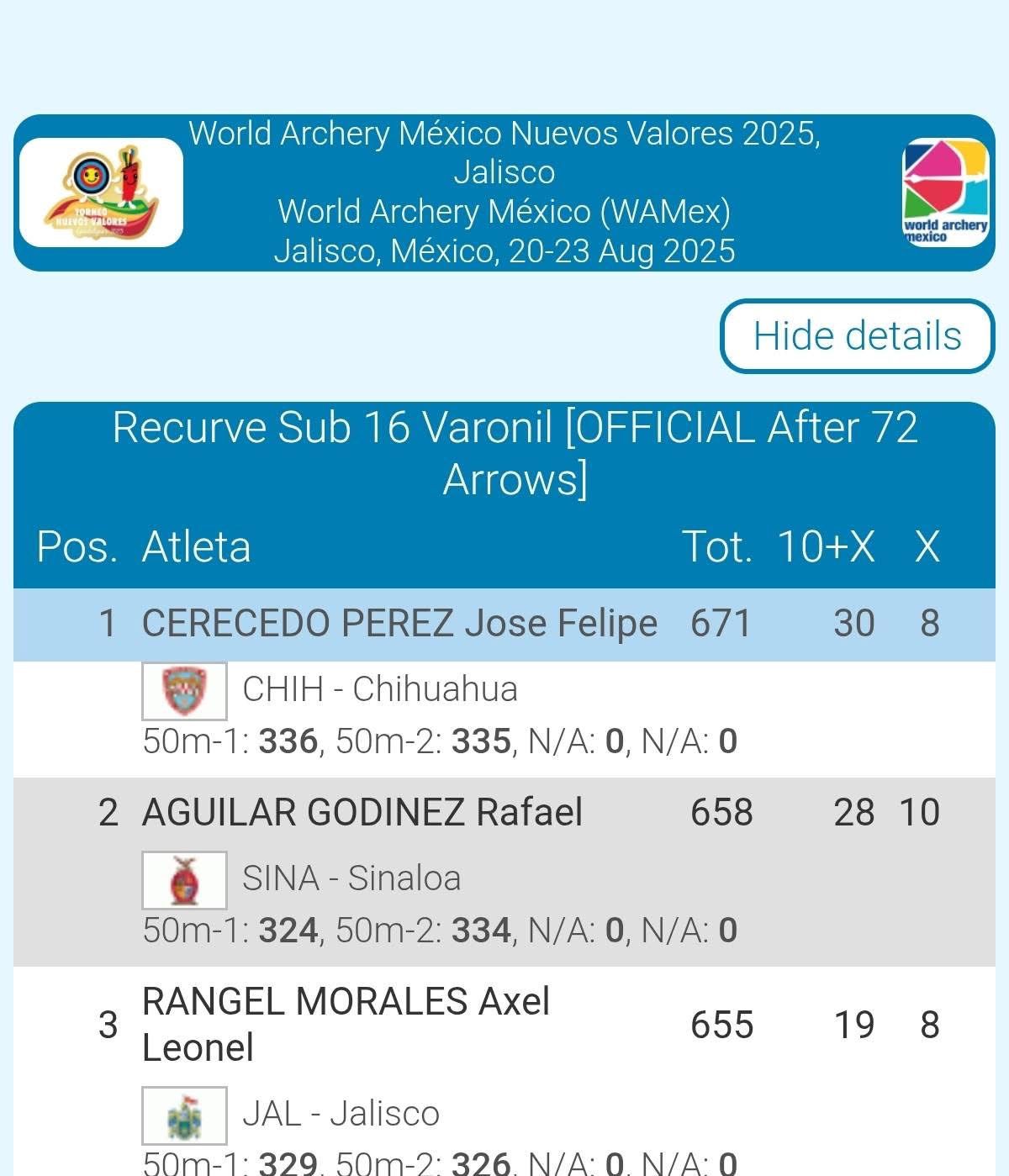 José Felipe disparó en la primera serie 336 puntos y en la segunda consiguió 335 para así lograr la hazaña de ser el primer juarense en obtener el récord nacional de tiro con arco.
