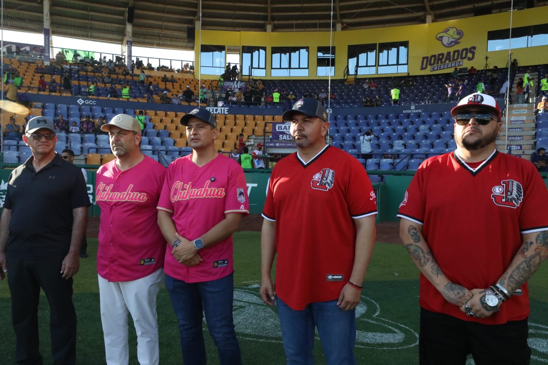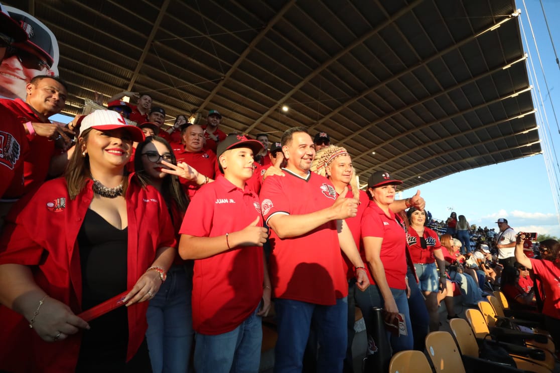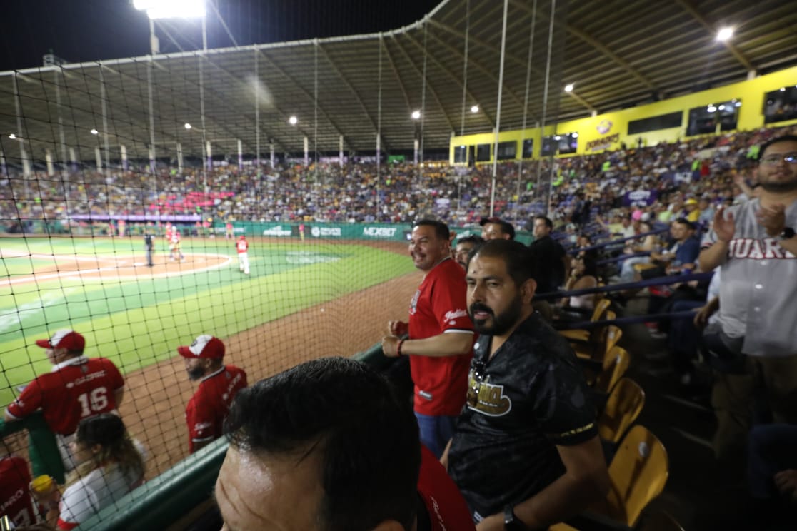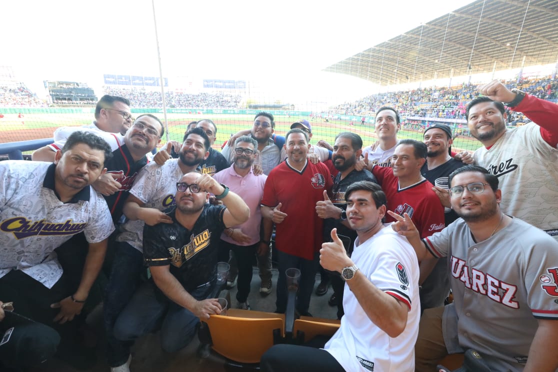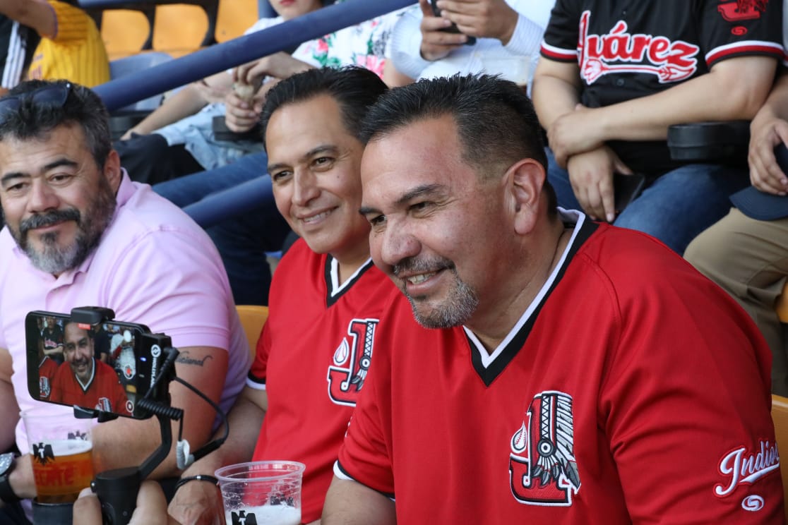 Minutos antes del encuentro el alcalde saludó a los peloteros y les hizo saber que la ciudadanía está orgullosa de ellos porque en cada partido han salido a poner el nombre de Juárez en alto.