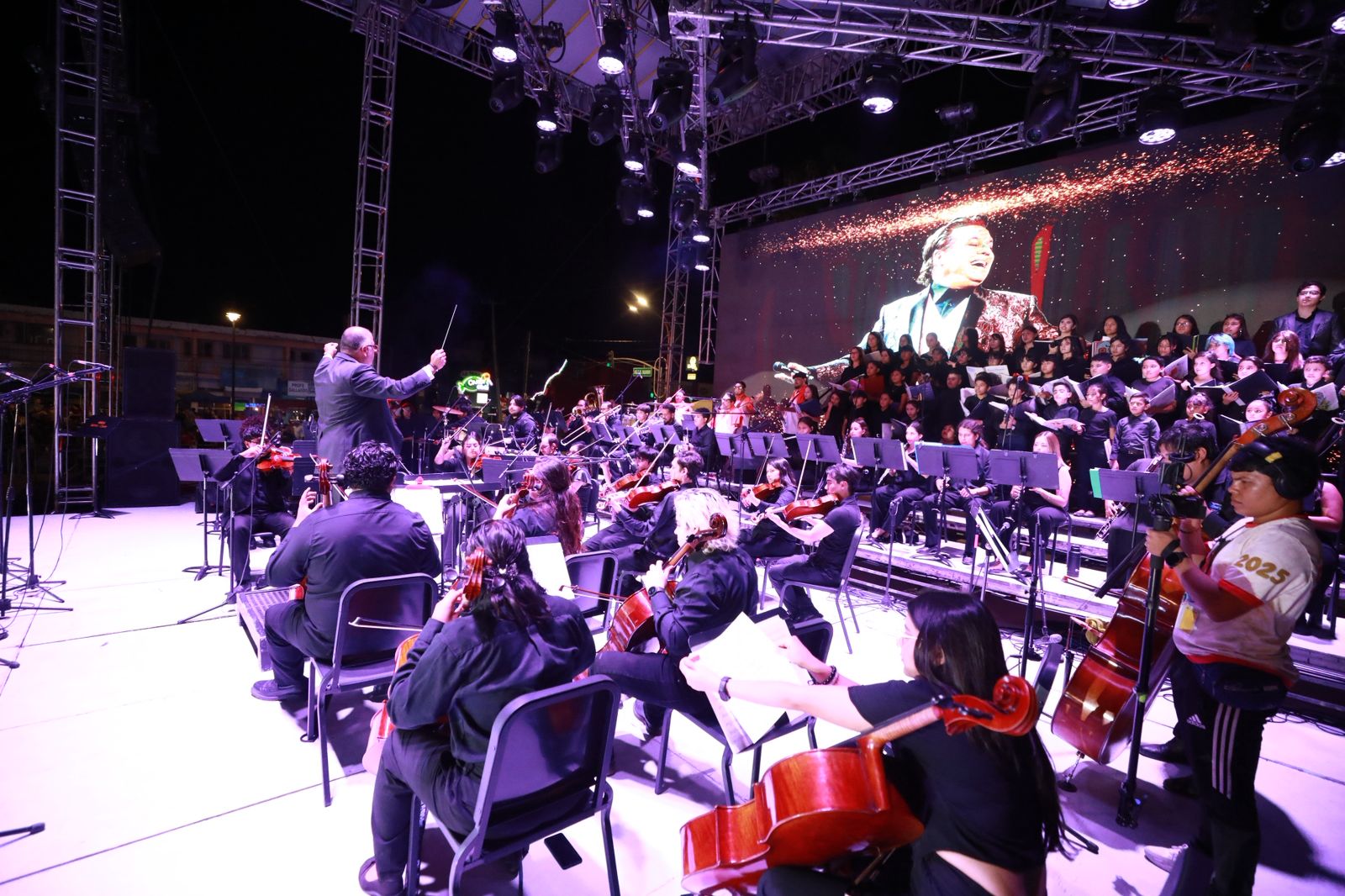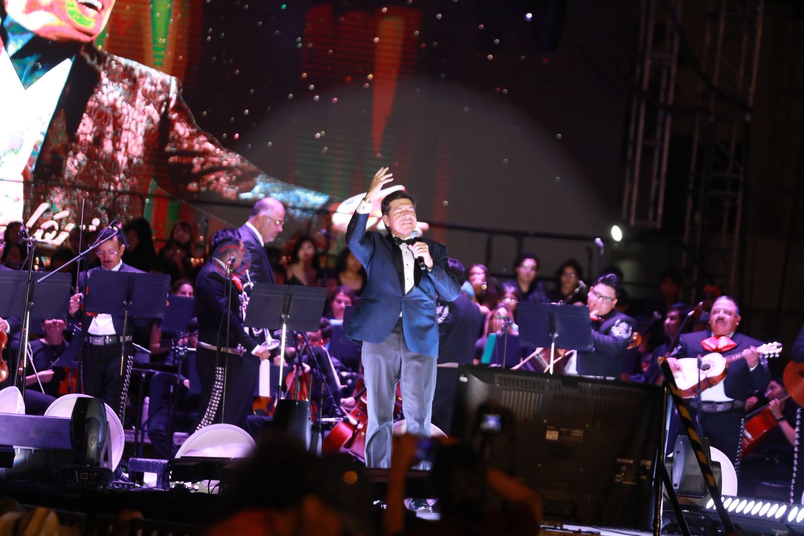 La voz del tenor chihuahuense, José Luis Ordóñez, acompañado de la Sinfónica Esperanza Azteca y el Mariachi “Así es México”, endulzaron el ambiente y dieron rienda suelta a las emociones de los presentes al compás de las notas musicales y las letras de Juan Gabriel, en el exterior del Museo que hoy celebra su primer año de apertura.