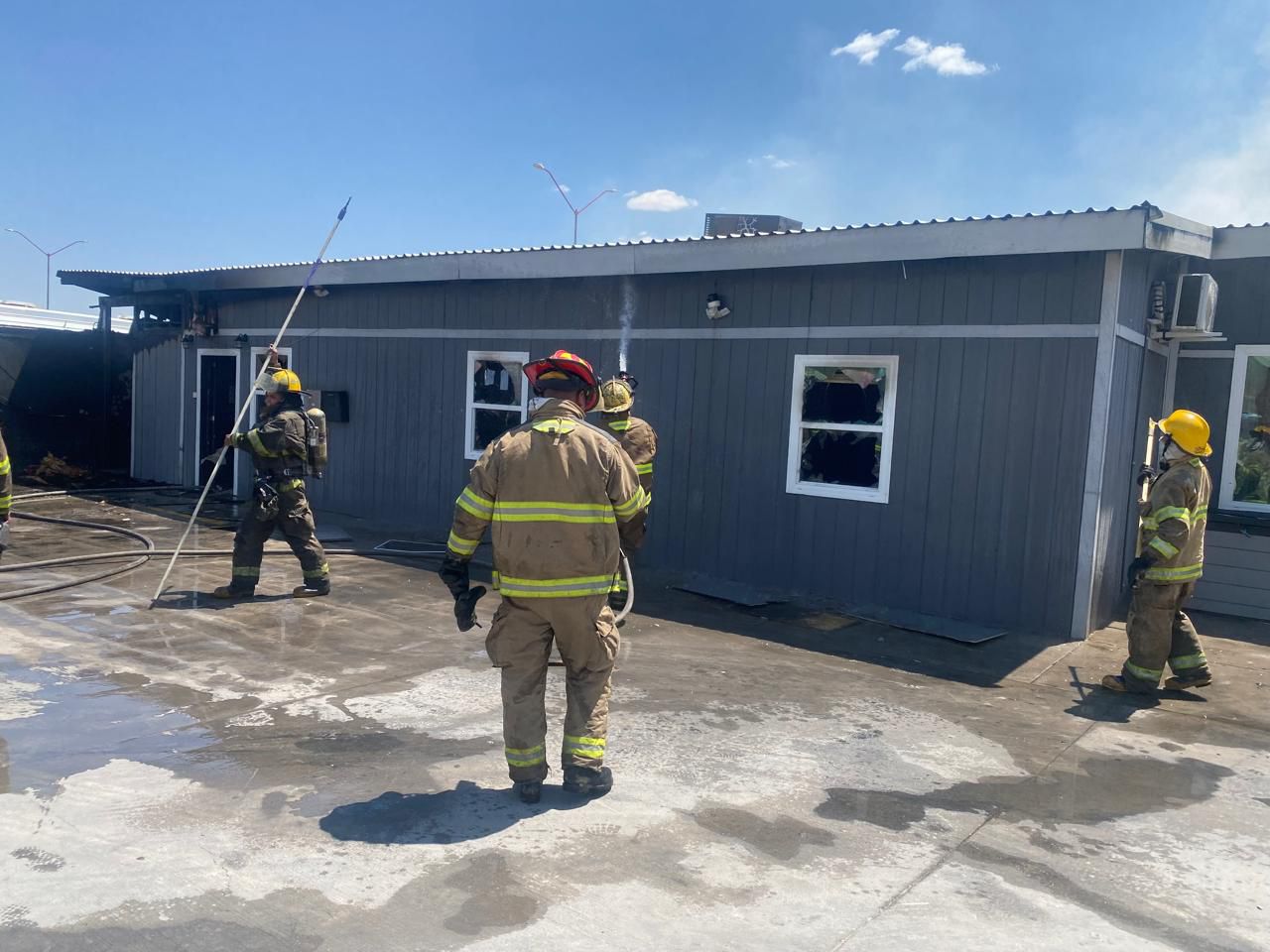 La Dirección General de Protección Civil, a través del Departamento de Bomberos, atendió un incendio registrado en un cuarto de aproximadamente 5 x 12 metros habilitado como oficinas, así como en un área separada que funcionaba como bodega de refacciones, dentro de una empresa de transporte y taller mecánico ubicada en el kilómetro 29 de la carretera a Casas Grandes.