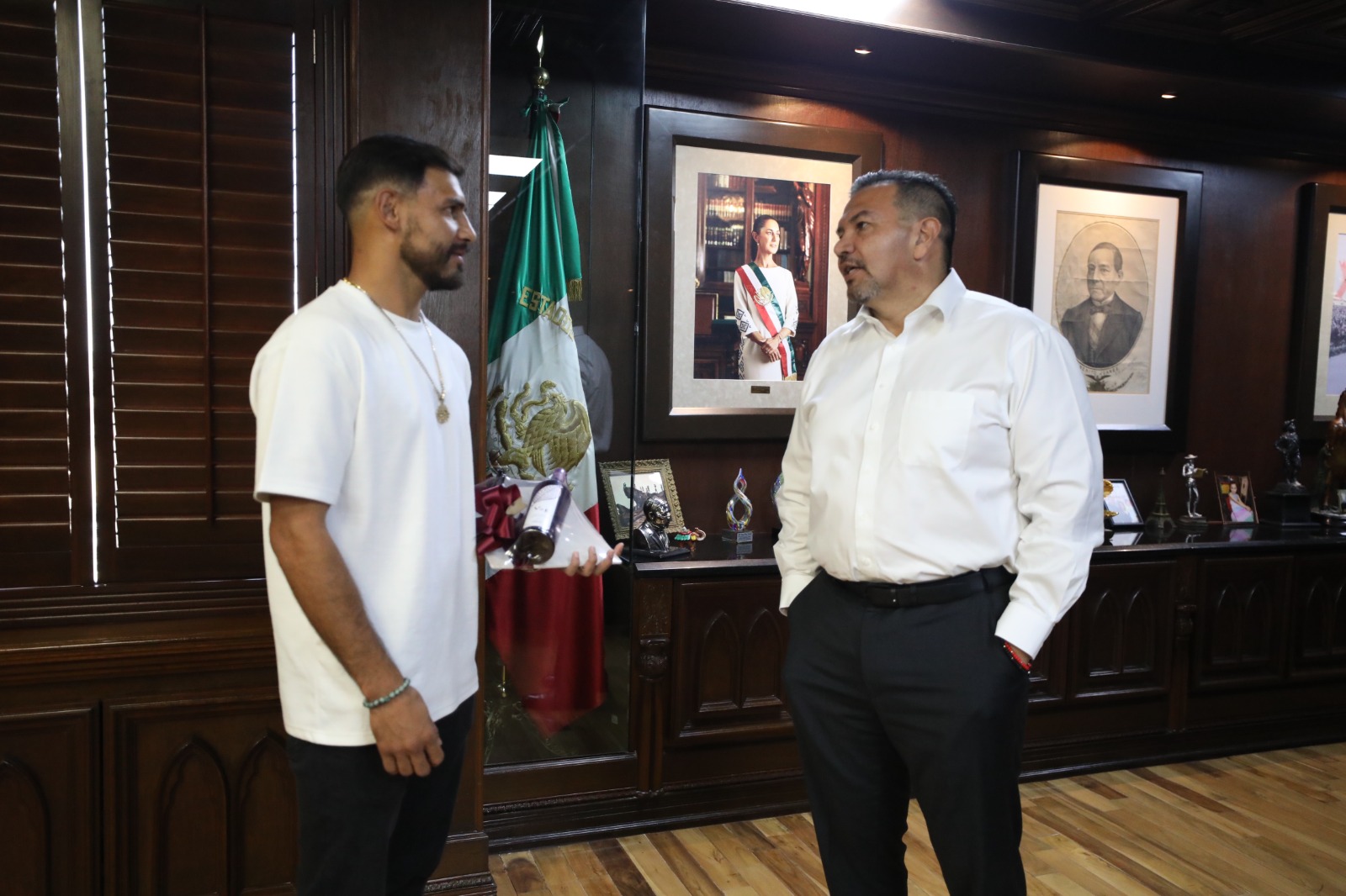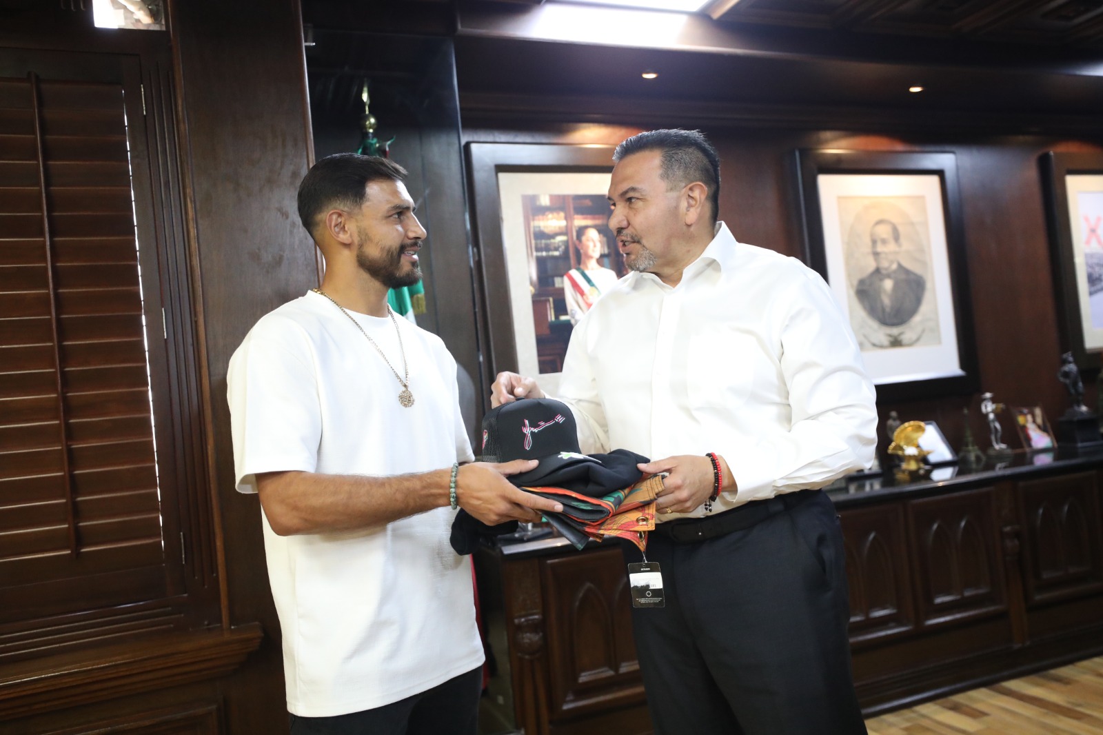 La reunión se llevó a cabo este día en la Unidad Administrativa Lic. Benito Juárez, donde el alcalde y el deportista hablaron sobre los proyectos y combates que están en puerta.