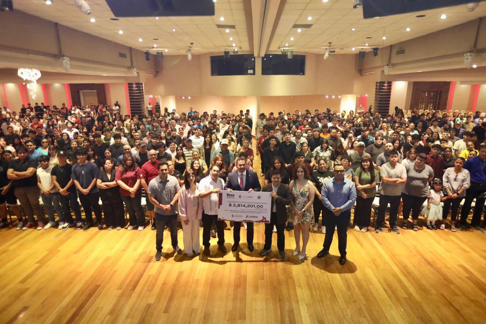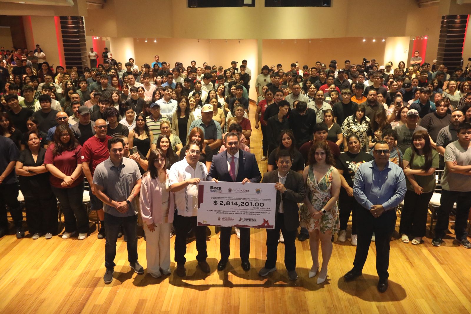 El Presidente Municipal, Cruz Pérez Cuéllar, entregó este día, de manera simbólica, el cheque por la cantidad de 2 millones 814 mil 201 pesos del programa de Becas para el Acceso a la Universidad, a las y los alumnos de la Universidad Tecnológica de Ciudad Juárez (UTCJ).