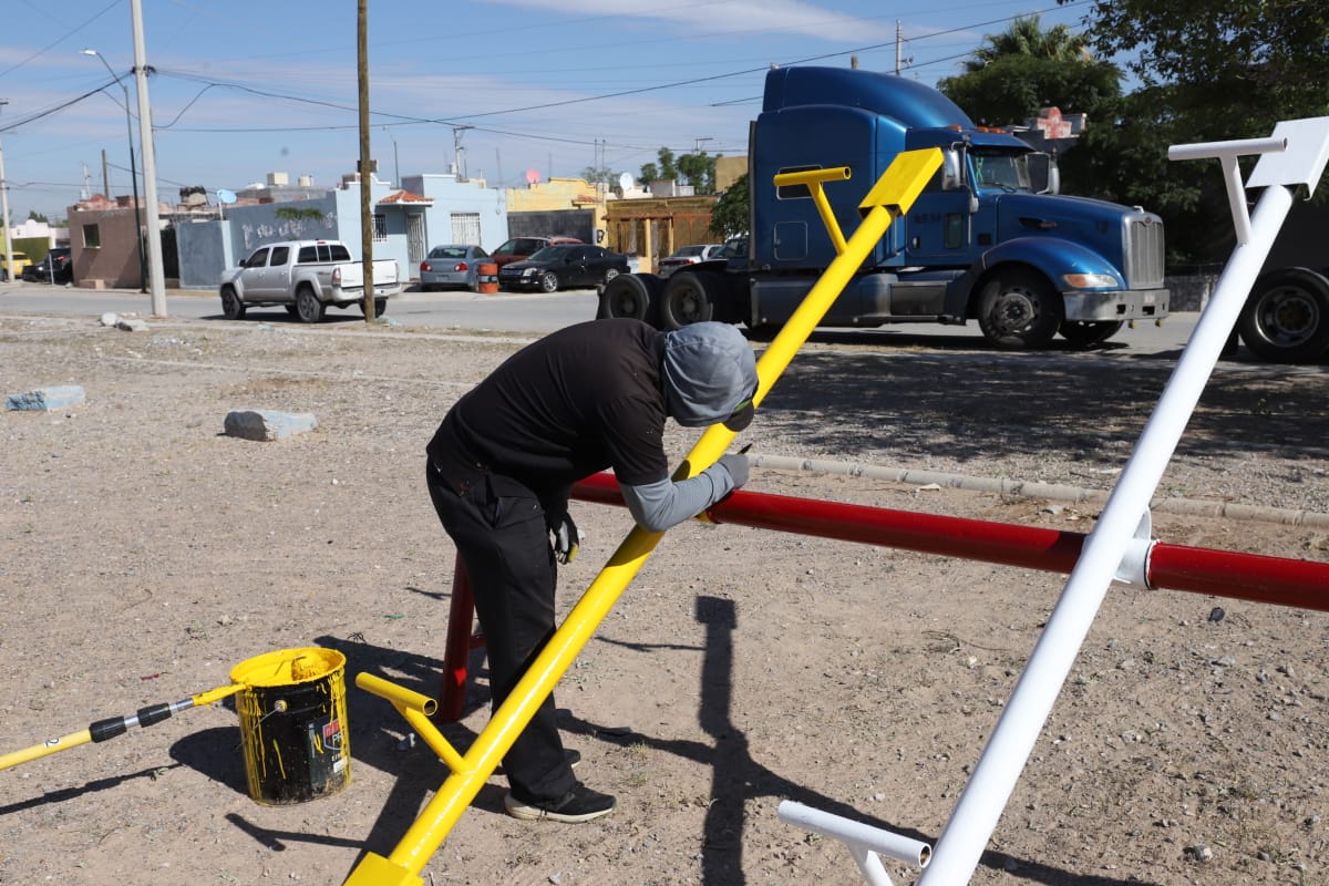 La Dirección de Parques y Jardines trabajó en pintar y darle mantenimiento a los juegos infantiles en el parque del Fraccionamiento El Campanario, como parte de las acciones permanentes de mejoramiento de espacios públicos que impulsa el Gobierno Municipal.