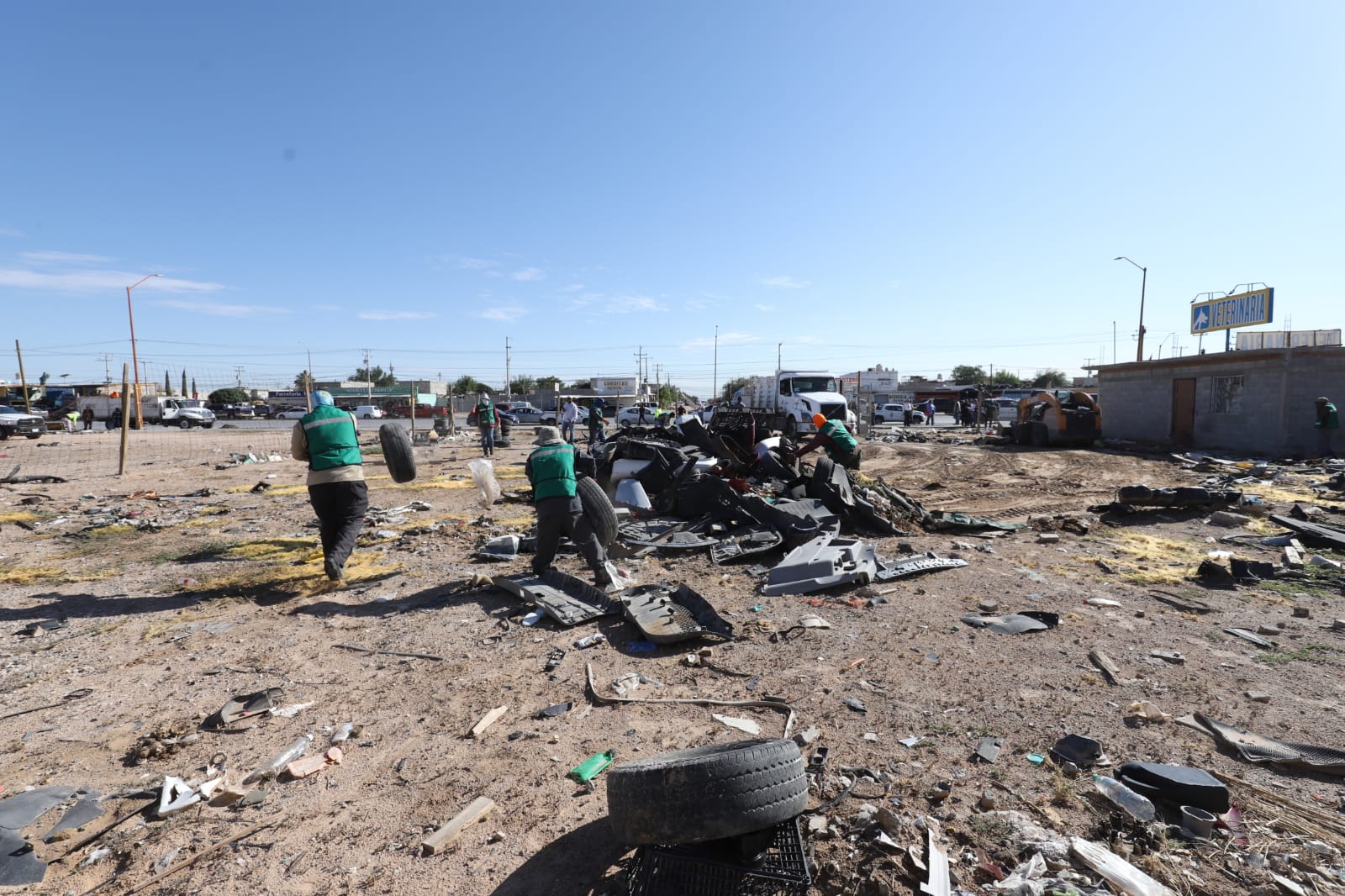 Aunque los propietarios retiraron la mayoría de los vehículos que ahí se encontraban, permanecía basura en su interior, por lo que se procedió con el operativo de limpieza.