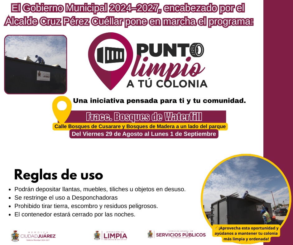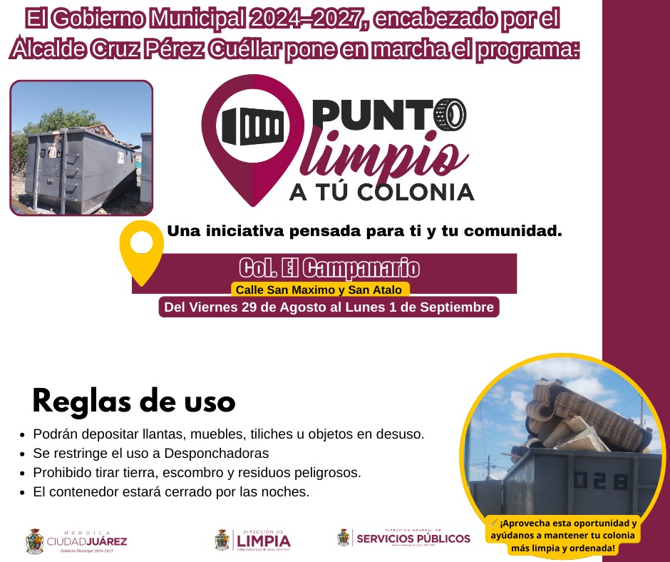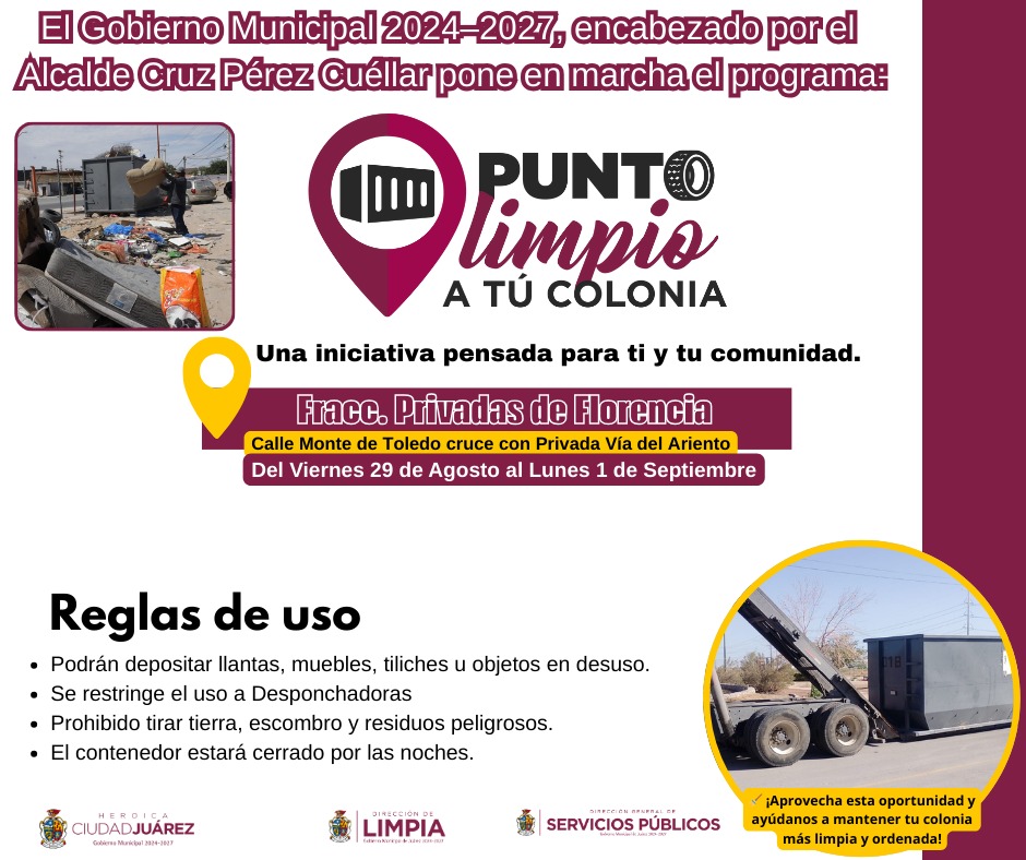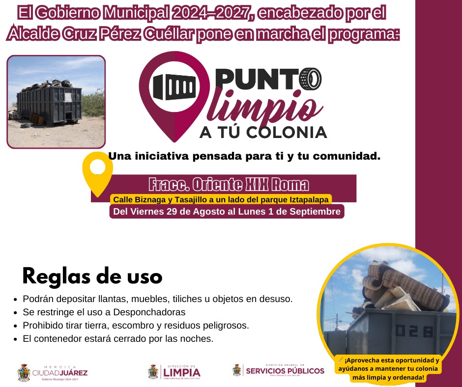 Los lugares y horarios de instalación se anuncian semanalmente en las redes sociales oficiales de la dependencia. Es importante recordar que no deben depositarse residuos peligrosos como aceites, solventes, químicos ni llantas de uso comercial.