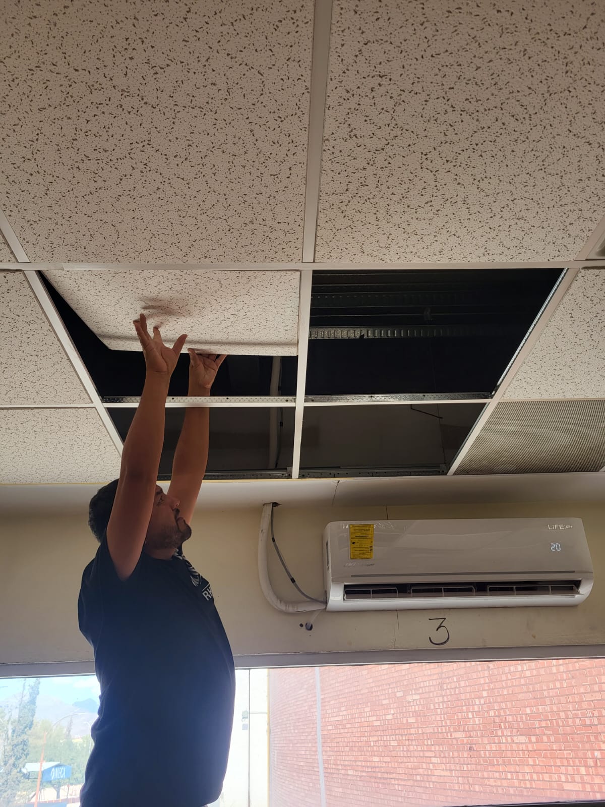 Los trabajos realizados incluyen pintura, resanado de paredes, colocación de plafones, duela y la instalación de aparatos de refrigeración, entre ellos minisplits y una unidad paquete de aire acondicionado, lo que permitirá que alumnos y docentes cuenten con espacios más cómodos y funcionales.