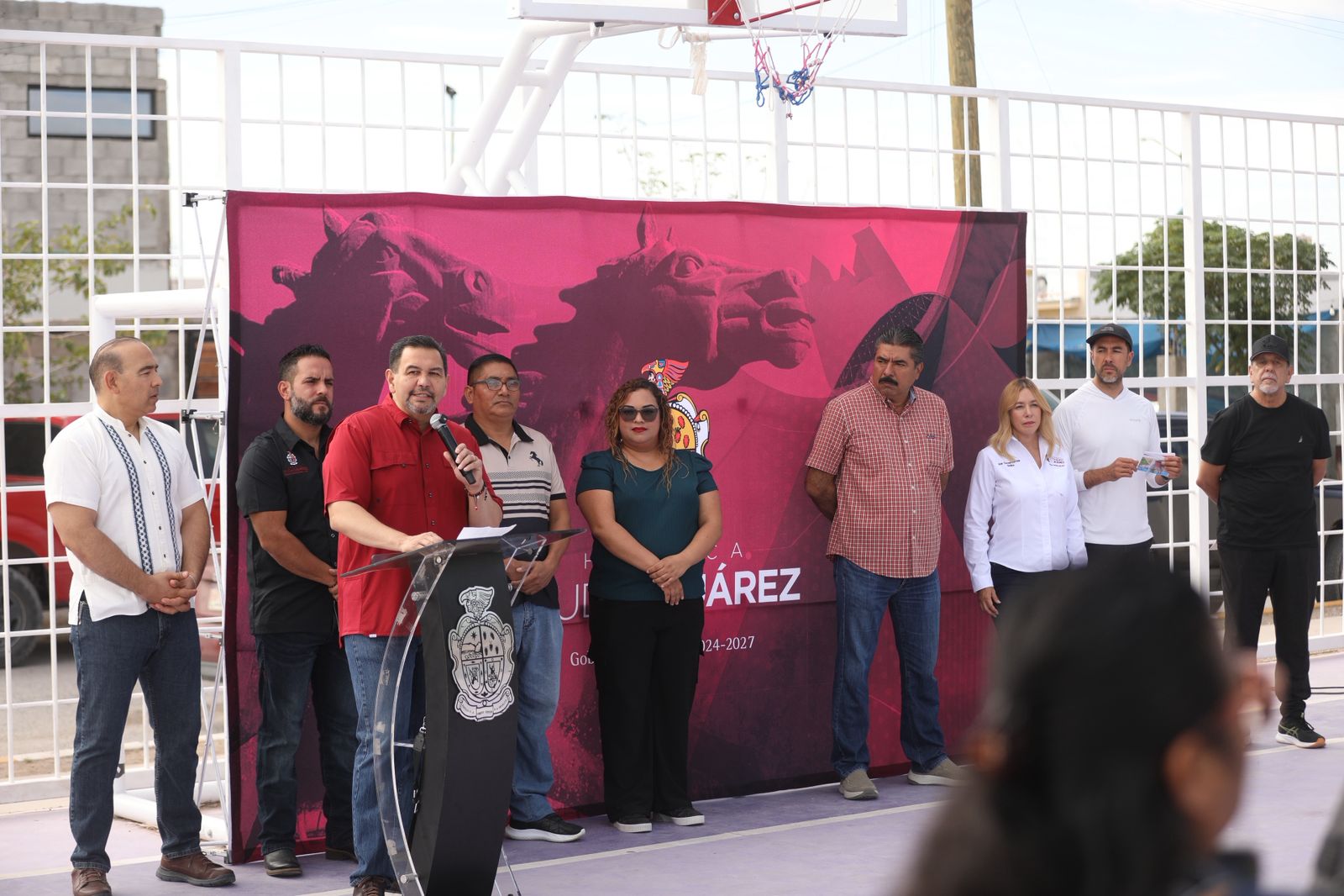 Durante la entrega de los trabajos de equipamiento estuvieron la síndica Municipal, Ana Carmen Estrada; el director general de Servicios Públicos Municipales, César Tapia Martínez; el director general de Centros Comunitarios, Luis Fernando Rodríguez Giner; el director de Atención Ciudadana, Víctor Valencia, así como Omar Acosta, de la Dirección de Participación Ciudadana.
