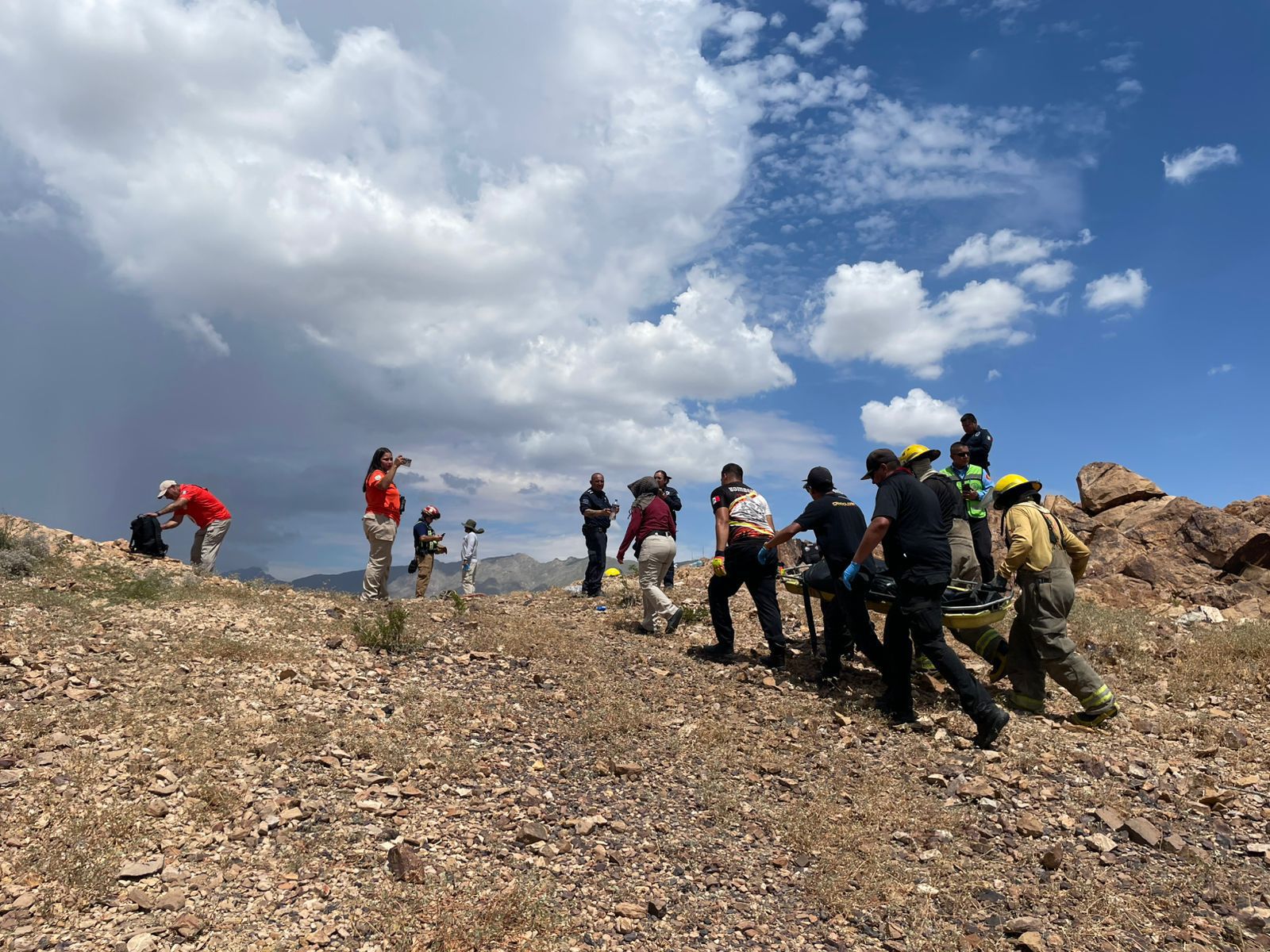 Durante la maniobra se empleó equipo especializado como sogas, camilla rÃgida y canastilla para realizar el descenso y traslado de manera segura.