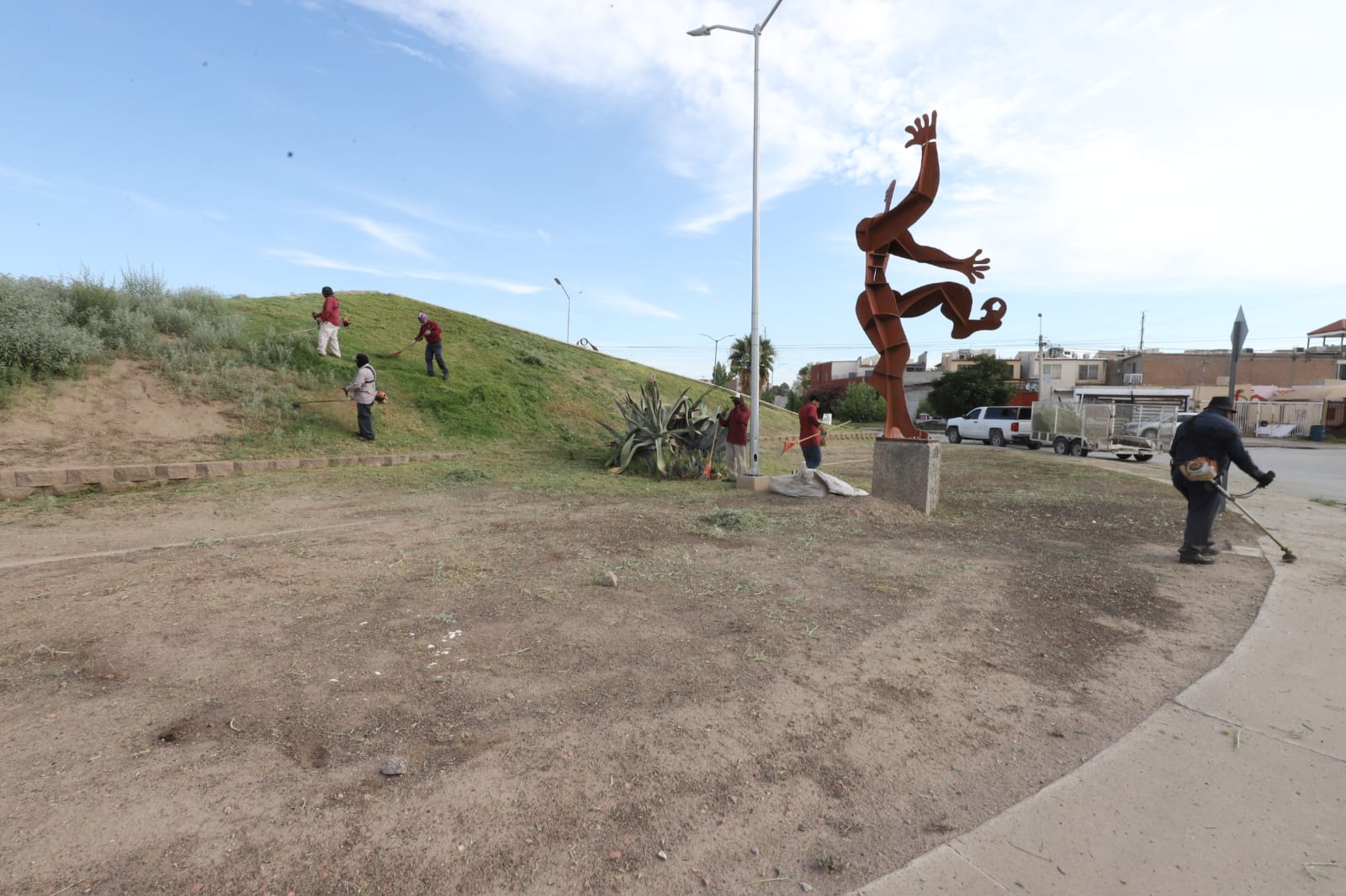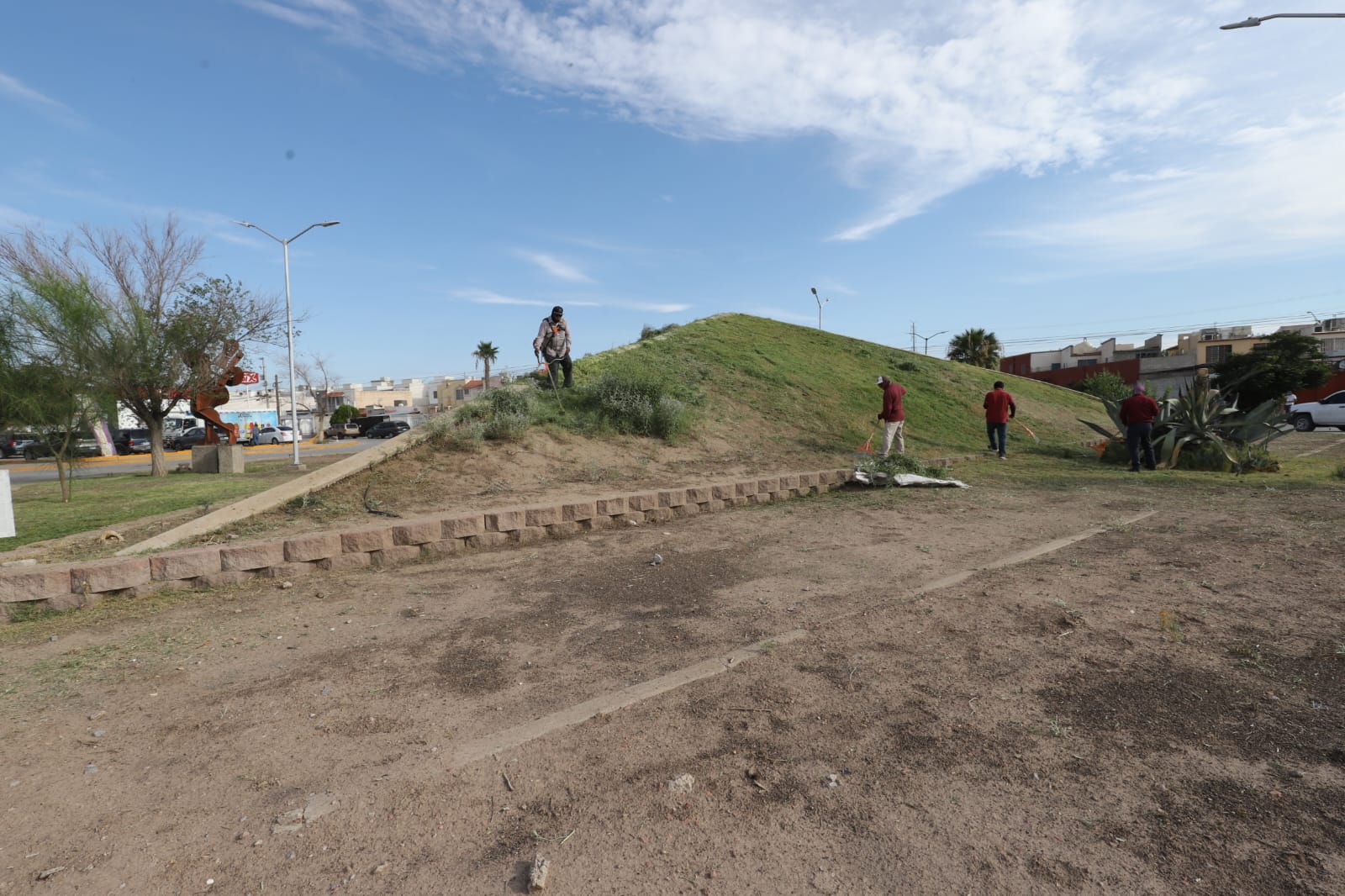 Limpia Parques y Jardines la glorieta Pirámide y el parque del fraccionamiento Jardines del Valle