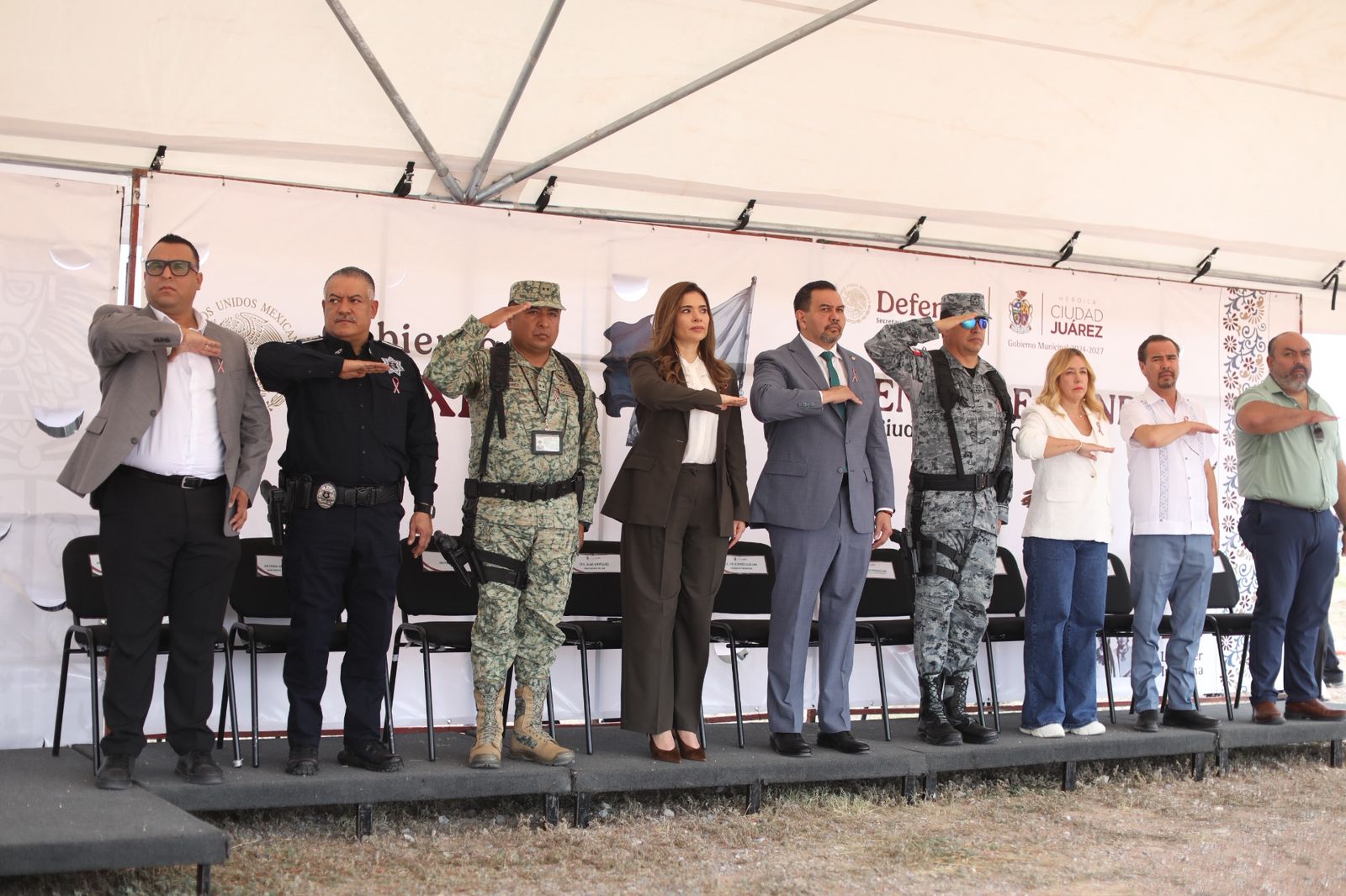 A la ceremonia acudieron el coordinador de la Guardia Nacional en Juárez, Coronel Juan Alfredo Oropeza y el Teniente Coronel de Caballería, Segundo Comandante del Noveno Regimiento de Caballería, Saúl Ramírez Santiago.