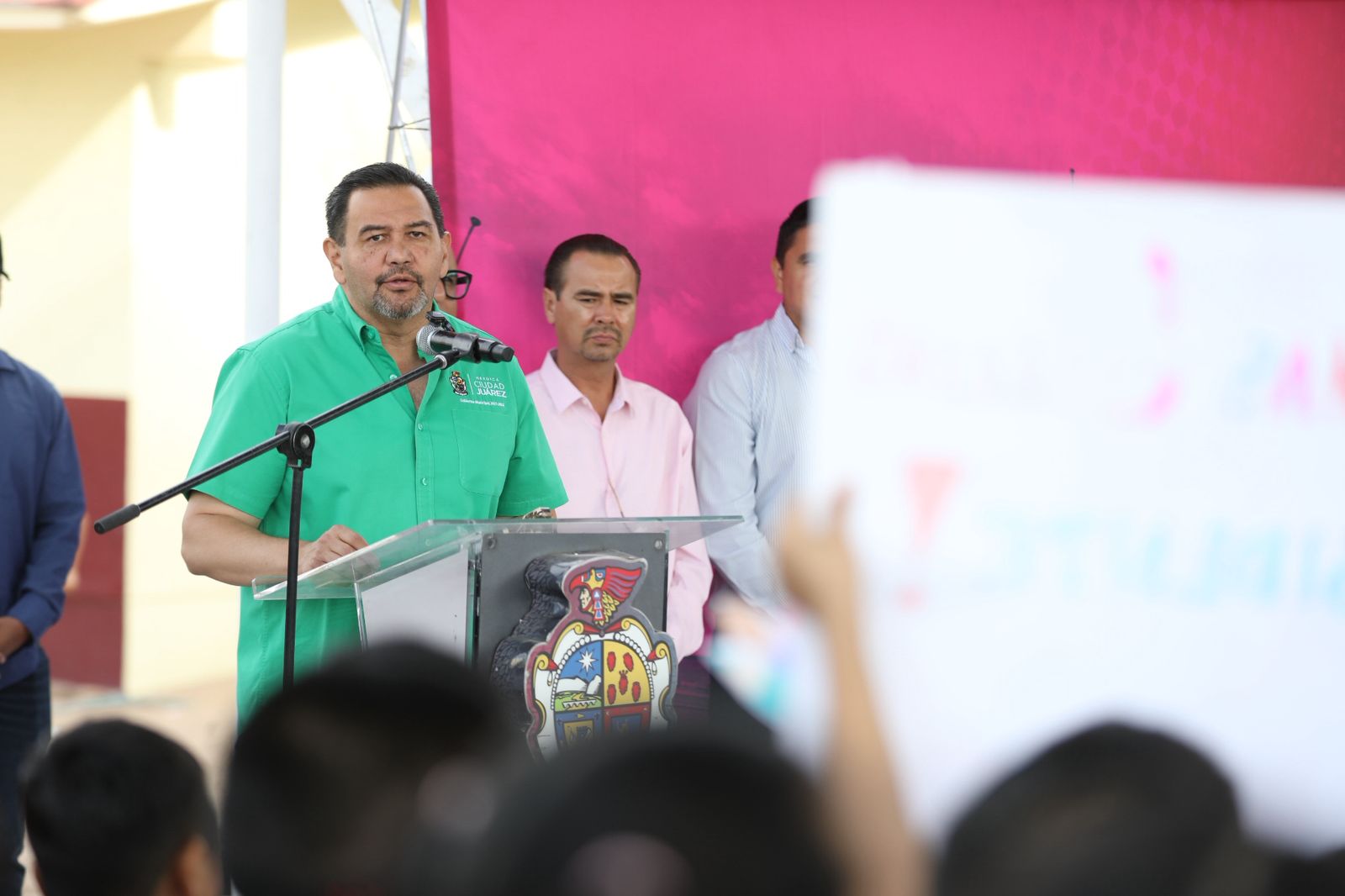 En el evento estuvieron Guillermo Alvídrez Olivas, director de Educación Municipal; Ismael Rueda, coordinador de Infraestructura Educativa; el regidor Jorge Bueno; Ana Estrada, síndica Municipal; Elia Nevárez, supervisora de la zona 83; Juan Daniel Ávila, director del turno matutino; Pedro Hidalgo, coordinador general de la sección 8 del Sindicato Nacional de Trabajadores de la Educación y Sassil Lozano, secretaria de organización del SNTE Sección 8.
