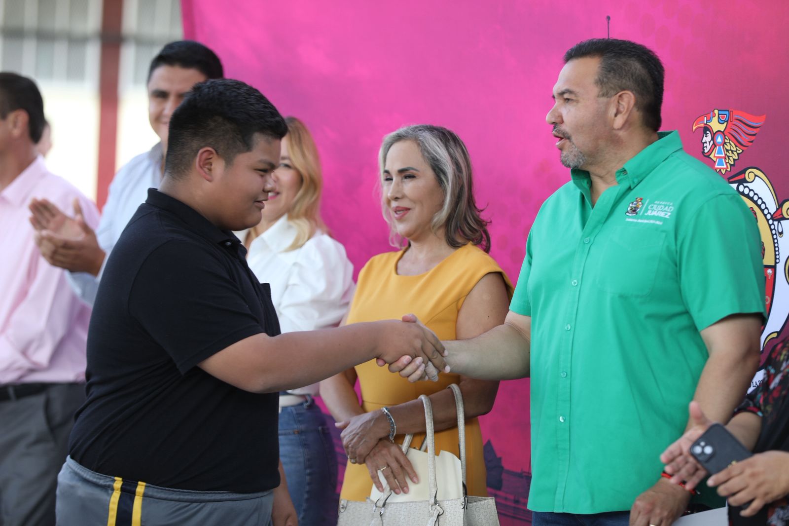 Los apoyos se alinean con la nueva visión educativa de crear entornos seguros y dignos, por ello agradeció al alcalde Pérez Cuéllar los beneficios recibidos.