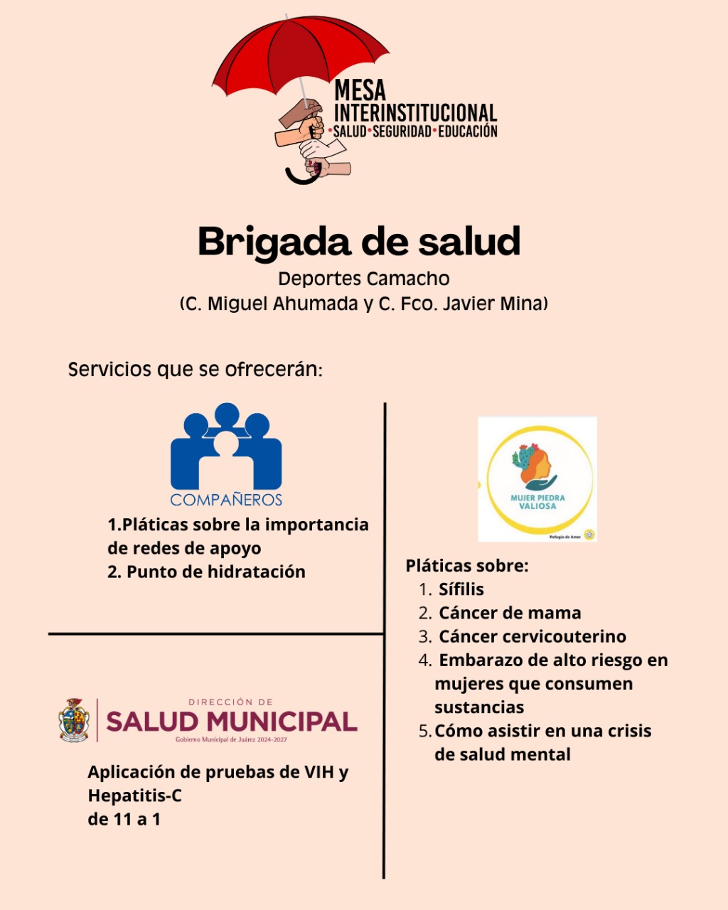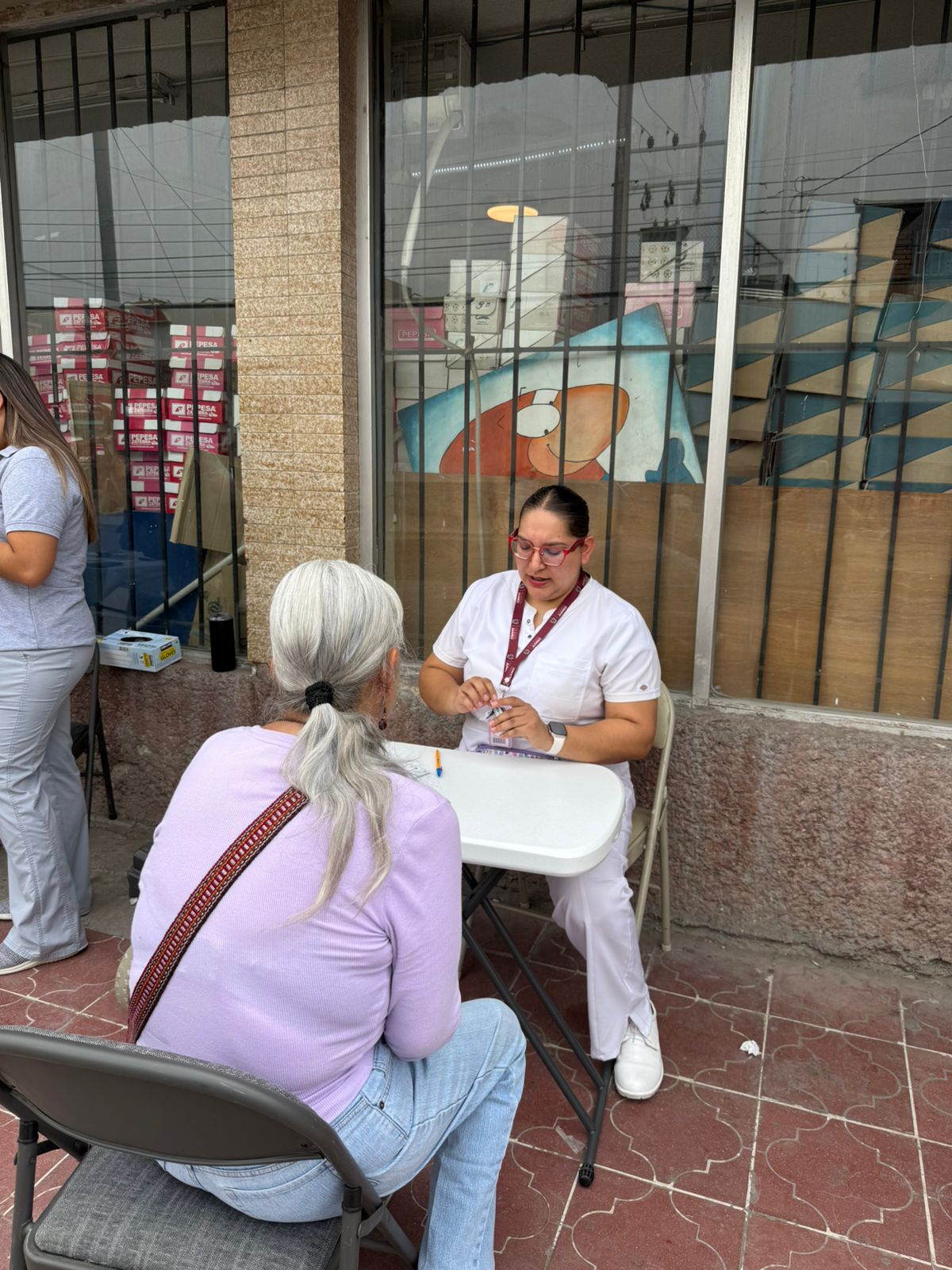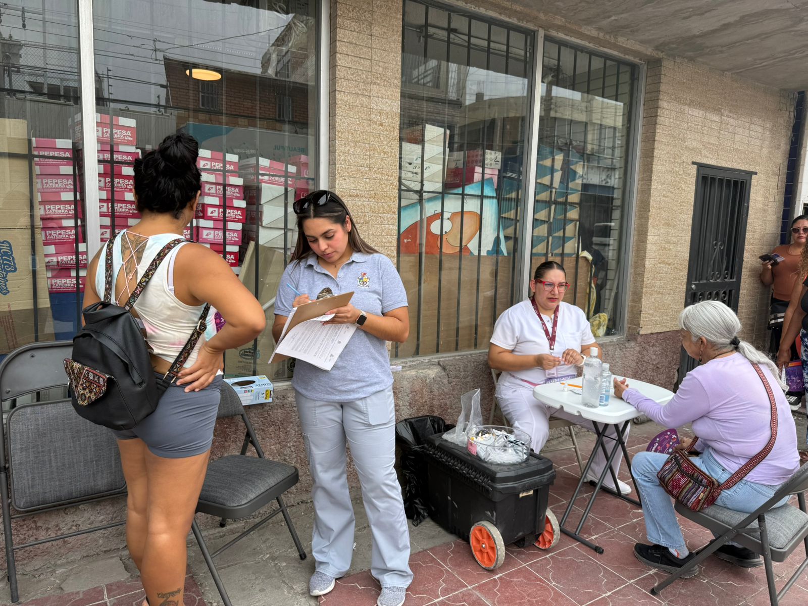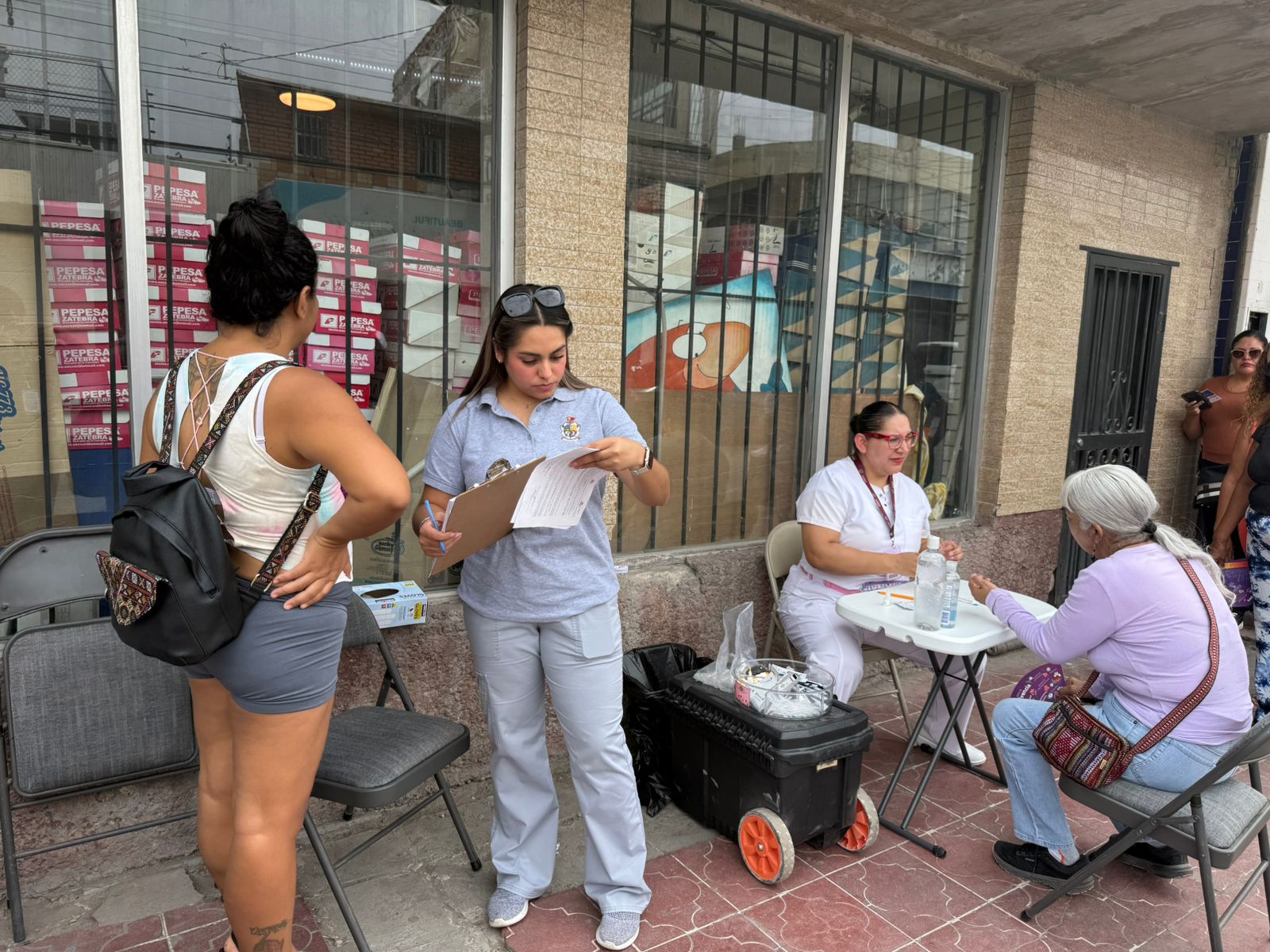 Empleados de la Dirección de Salud Municipal llevaron a cabo una brigada médica en el cruce de las calles Francisco Javier Mina y Miguel Ahumada, en la Zona Centro de la ciudad.