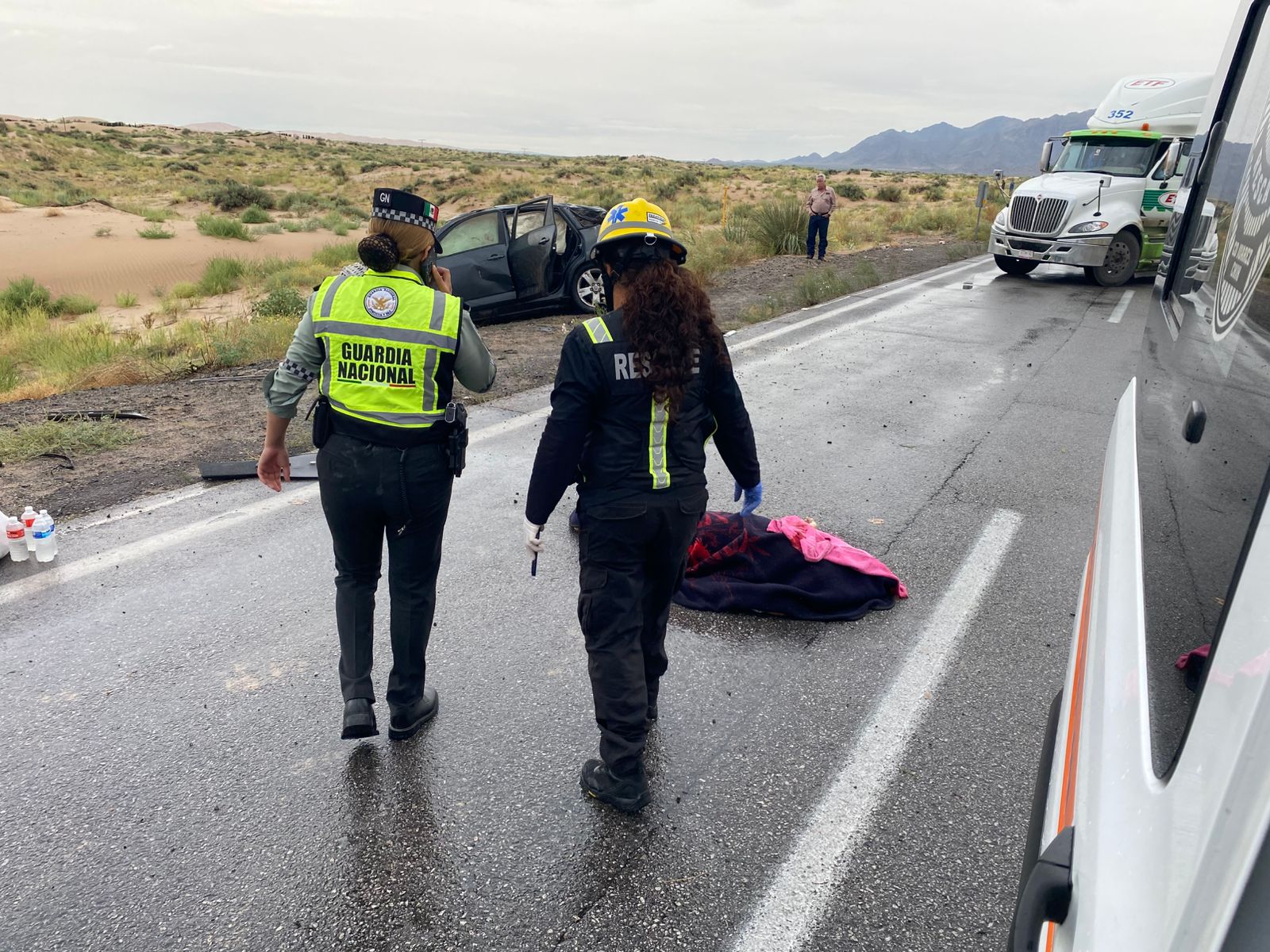 Esta mañana, alrededor de las 7:30 horas, la Unidad #12 del Departamento de Rescate acudió al kilómetro 306 de la carretera Juárez–Chihuahua para atender una volcadura.