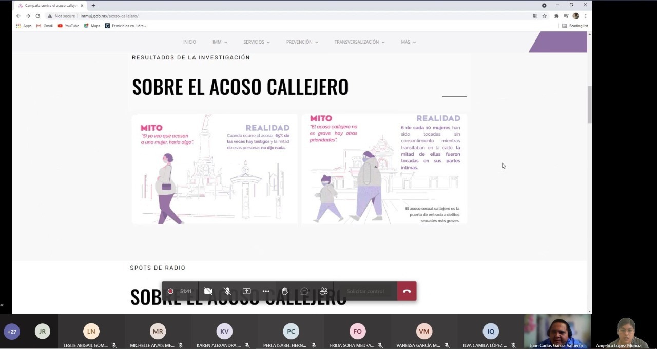 De igual forma se brindó una conferencia sobre el Acoso Sexual Callejero a estudiantes de Antropología Social de la Universidad Autónoma de Ciudad Juárez.