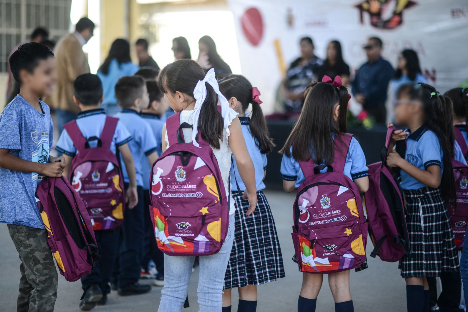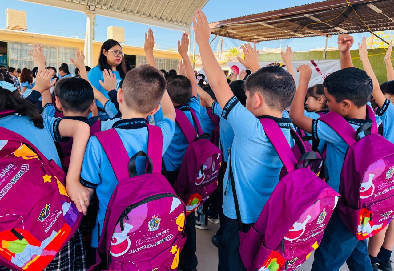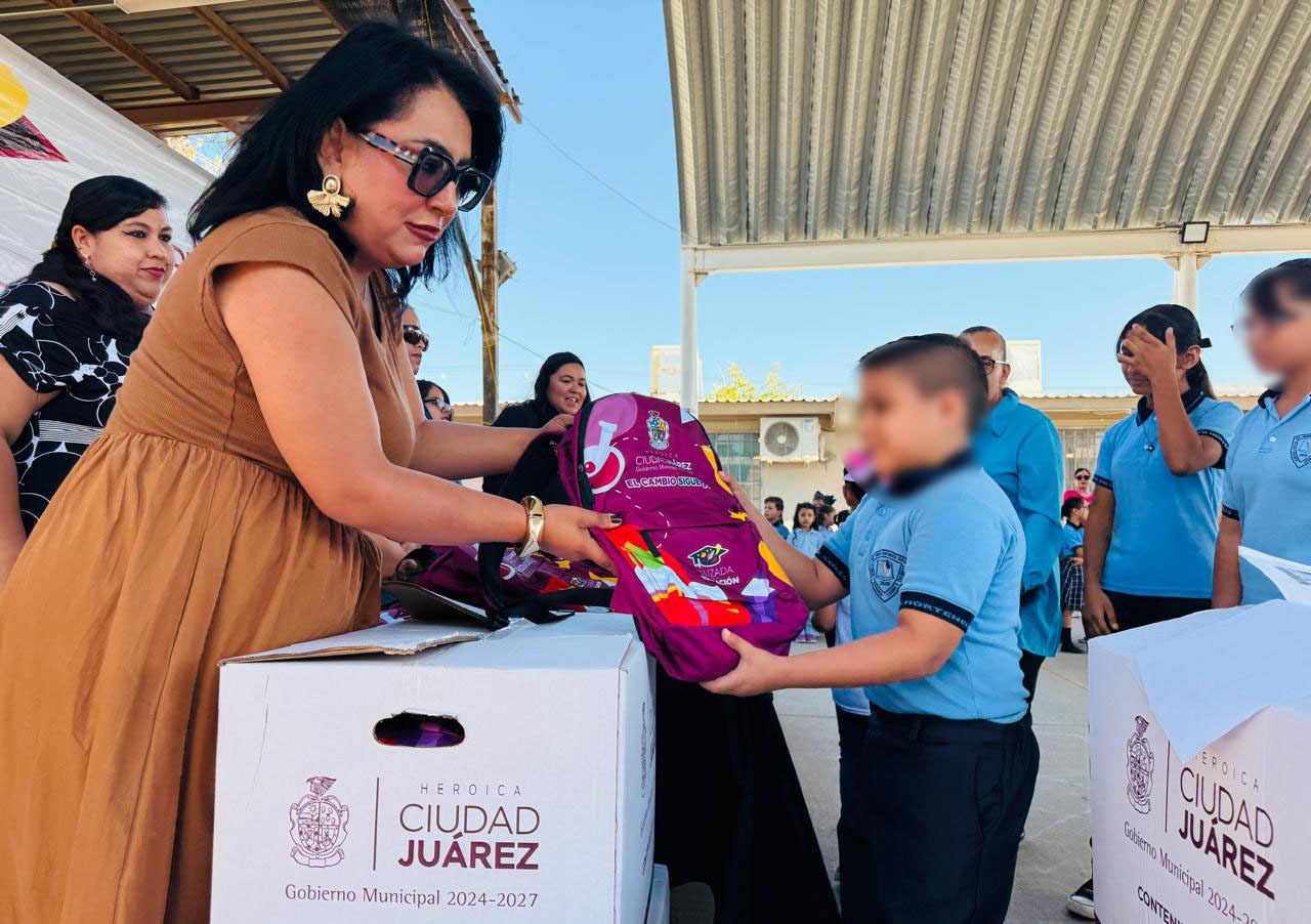 En un esfuerzo por fortalecer la educación y brindar apoyo a las familias juarenses, el Gobierno Municipal, a través del Instituto para la Cultura del Municipio de Juárez (IPACULT), entregó más de 200 mochilas y loncheras a estudiantes de la Escuela Primaria Hortensia Solís Ontiveros.