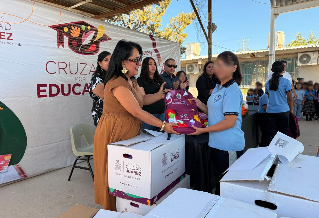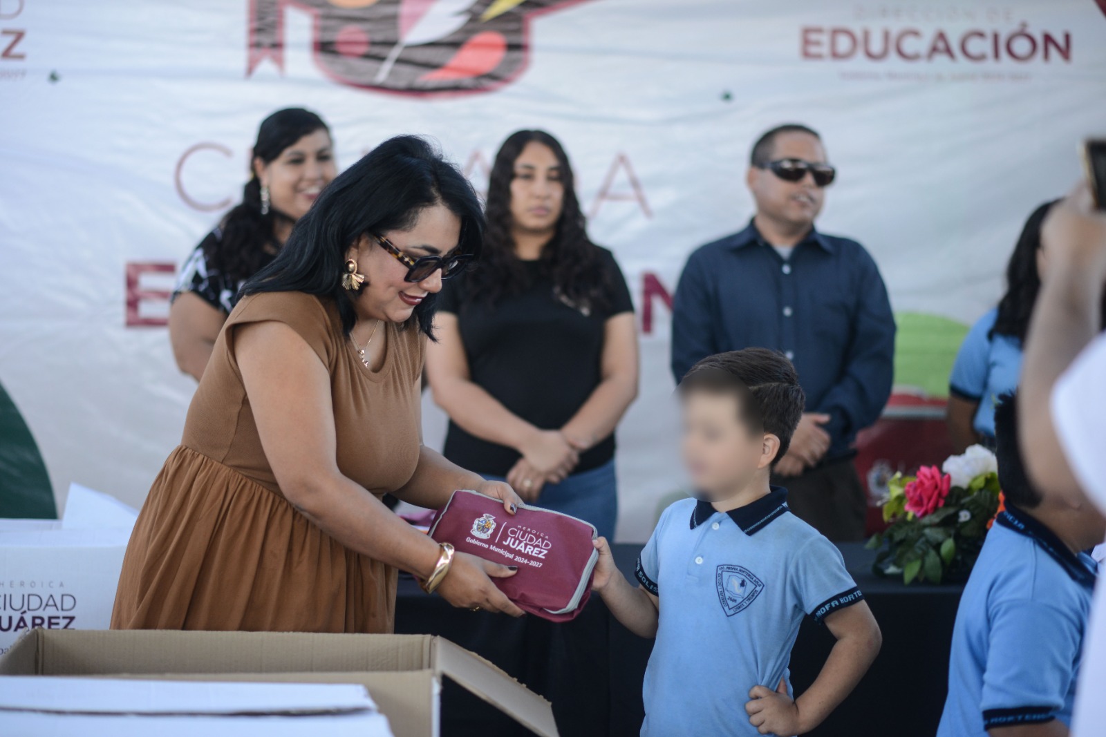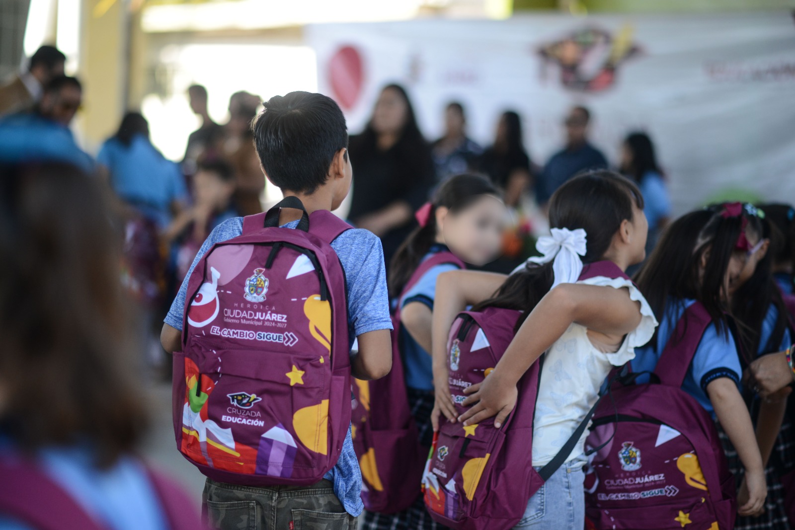 En un esfuerzo por fortalecer la educación y brindar apoyo a las familias juarenses, el Gobierno Municipal, a través del Instituto para la Cultura del Municipio de Juárez (IPACULT), entregó más de 200 mochilas y loncheras a estudiantes de la Escuela Primaria Hortensia Solís Ontiveros.