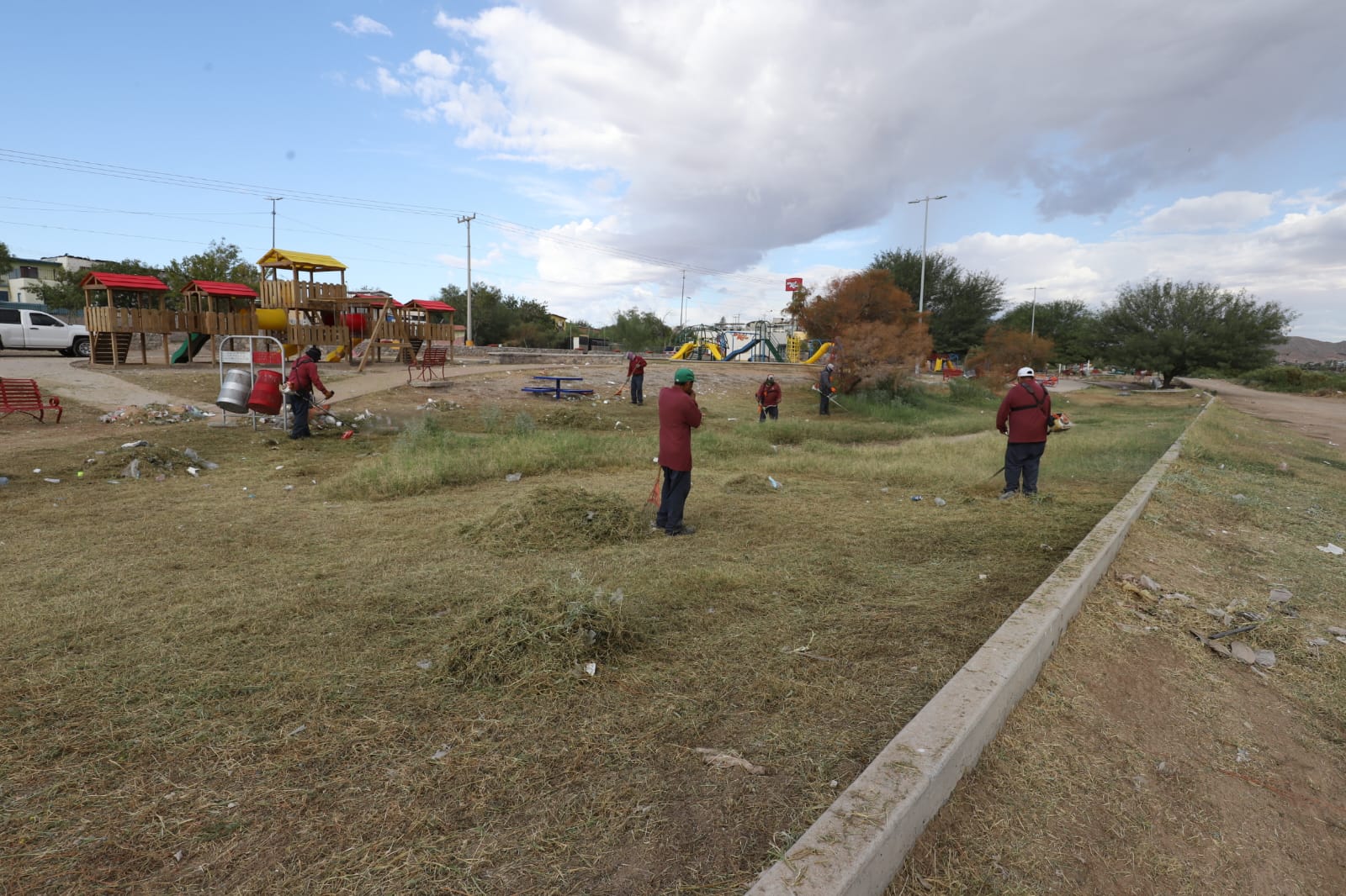El titular de la dependencia, Daniel Zamarrón Saldaña, informó que las labores comprendieron limpieza general, corte de maleza, poda formativa de árboles y retiro de residuos, con el propósito de mantener en buen estado este espacio público que es punto de encuentro para familias y visitantes de la zona.