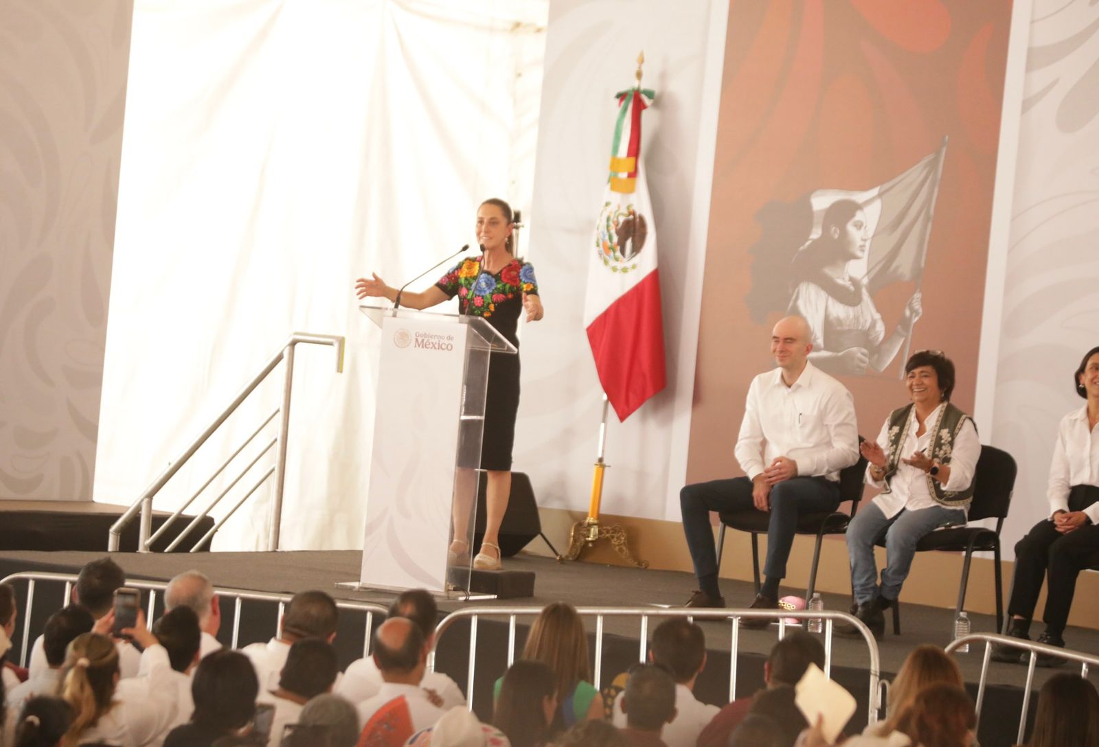 La mandataria habló del importante lugar de las mujeres en la historia de México y en cada hogar del país, por lo que uno de sus principales apoyos ha sido la Pensión Universal para mujeres de 60 años, que ha beneficiado a miles de mujeres que no contaban muchas de ellas con un ingreso propio.