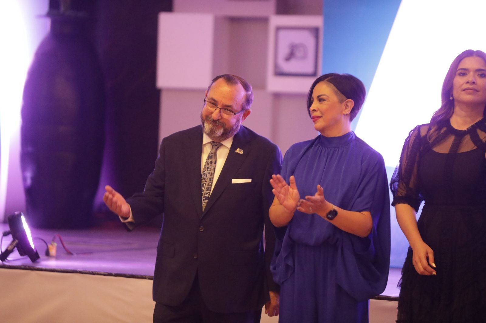 El Presidente Municipal, Cruz Pérez Cuéllar acompañado de su esposa Rubí Enríquez, acudieron a la cena que se realizó por el 30 aniversario del Instituto Municipal de Investigación y Planeación (IMIP).