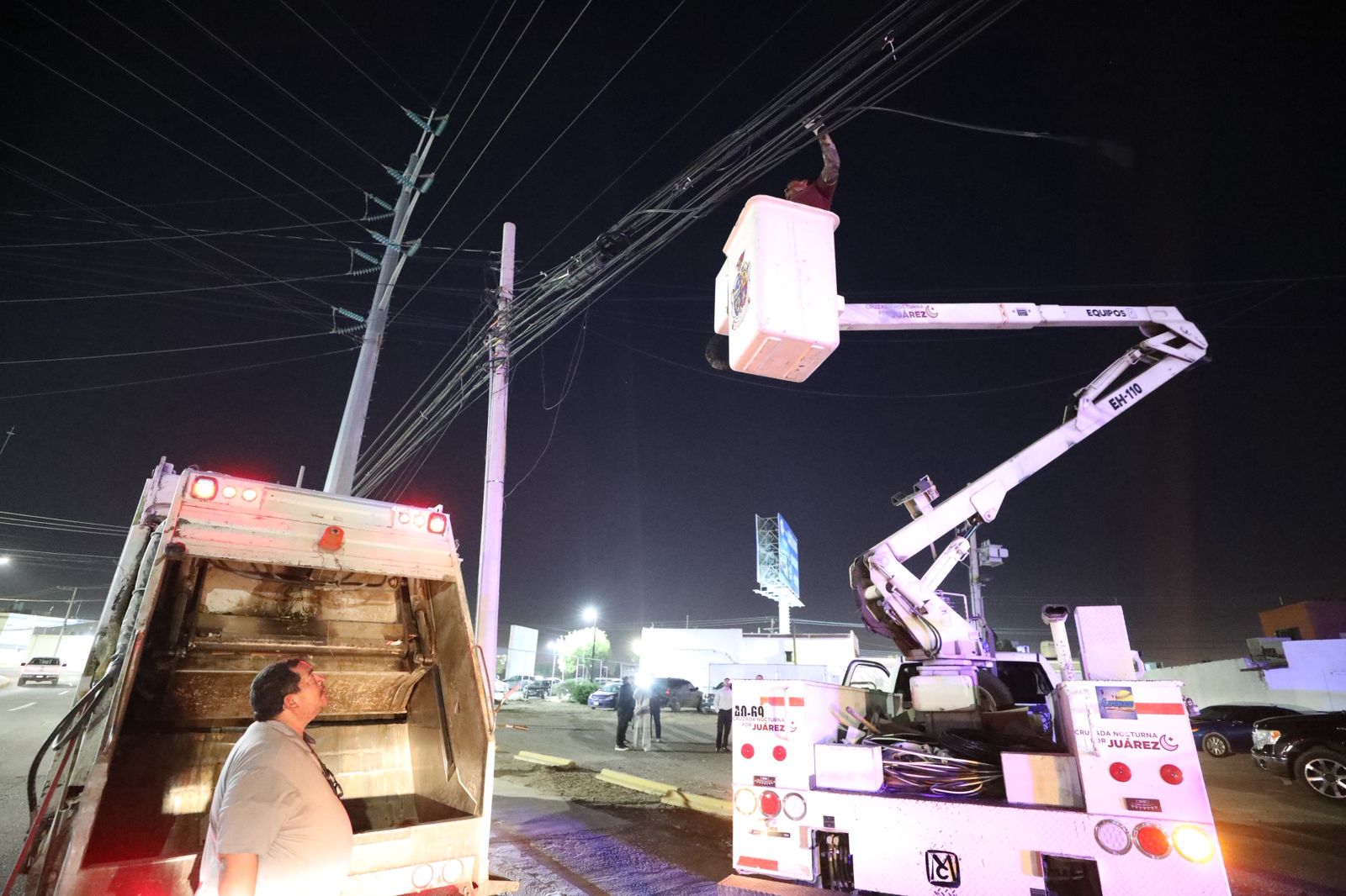 El coordinador operativo de Alumbrado Público, Juan Huerta, informó que intervinieron los 2.5 kilómetros del bulevar Tomás Fernández y sus conexiones, rehabilitando 111 luminarias de 200 watts y tres gabinetes de control, mejorando así la iluminación y seguridad en la zona.