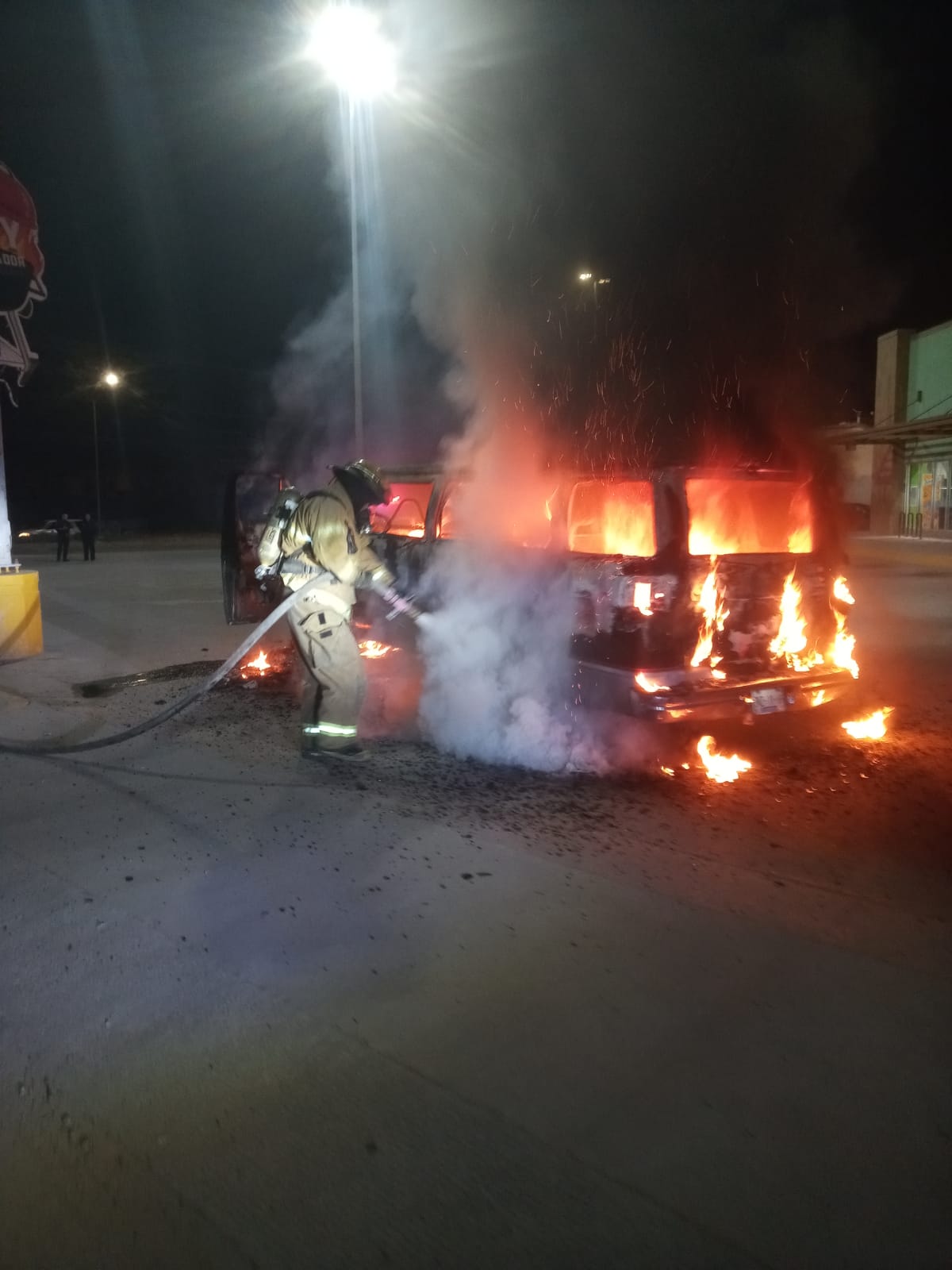 Los elementos arribaron al lugar para realizar las labores de control y sofocación del fuego, logrando evitar que las llamas se propagaran hacia otros automóviles o estructuras cercanas.