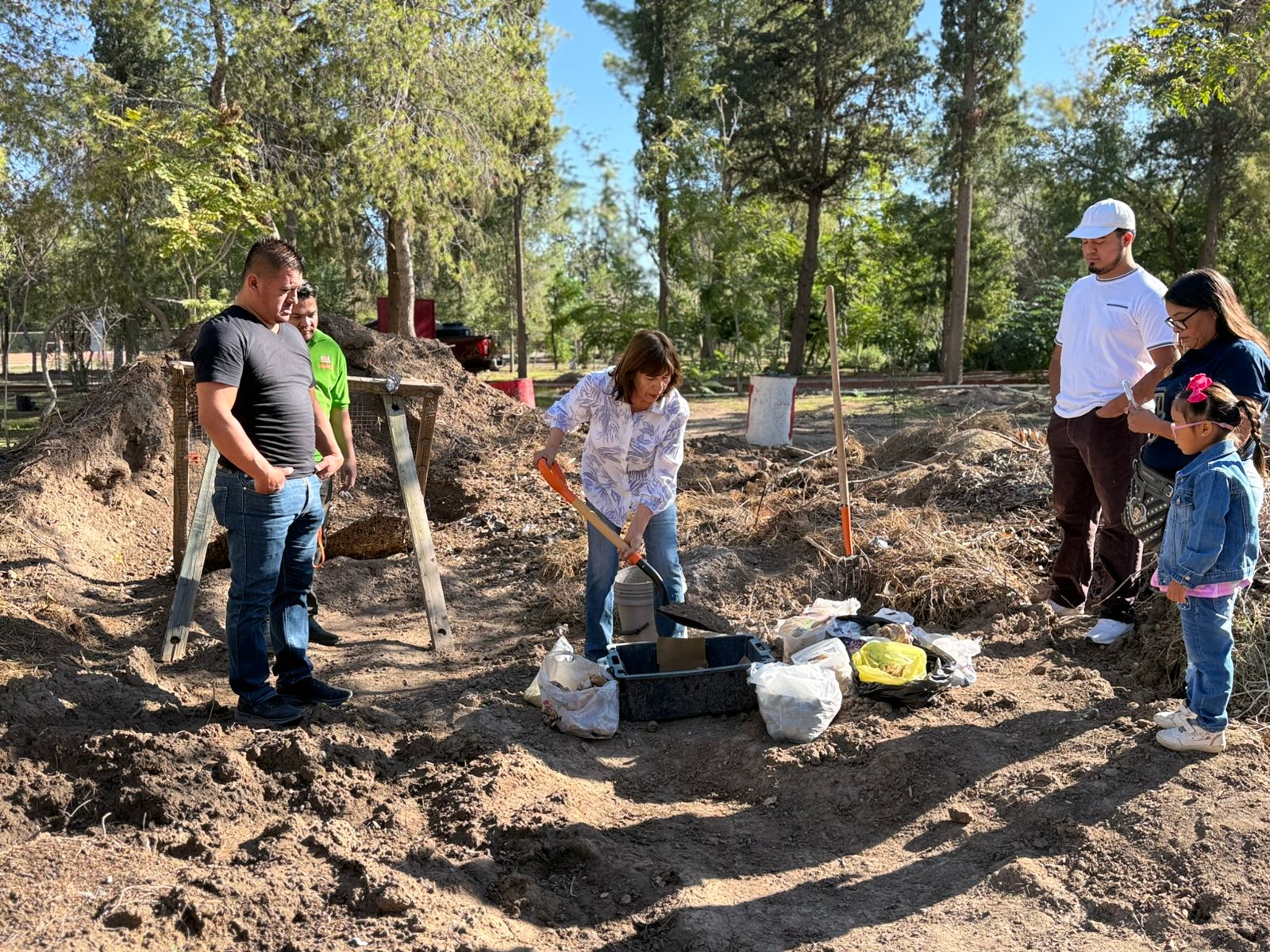 Con el objetivo de fomentar prácticas sostenibles y aprovechar los desechos orgánicos que se generan en las casas, la Dirección de Parques y Jardines llevó a cabo un taller de composta en el vivero del parque El Chamizal.