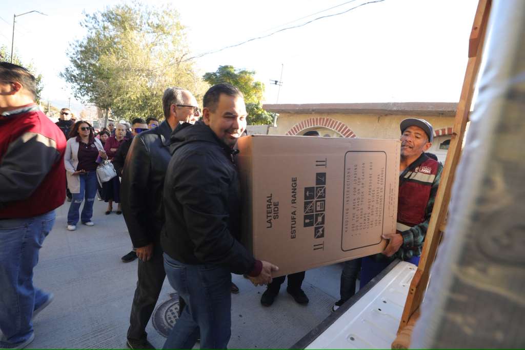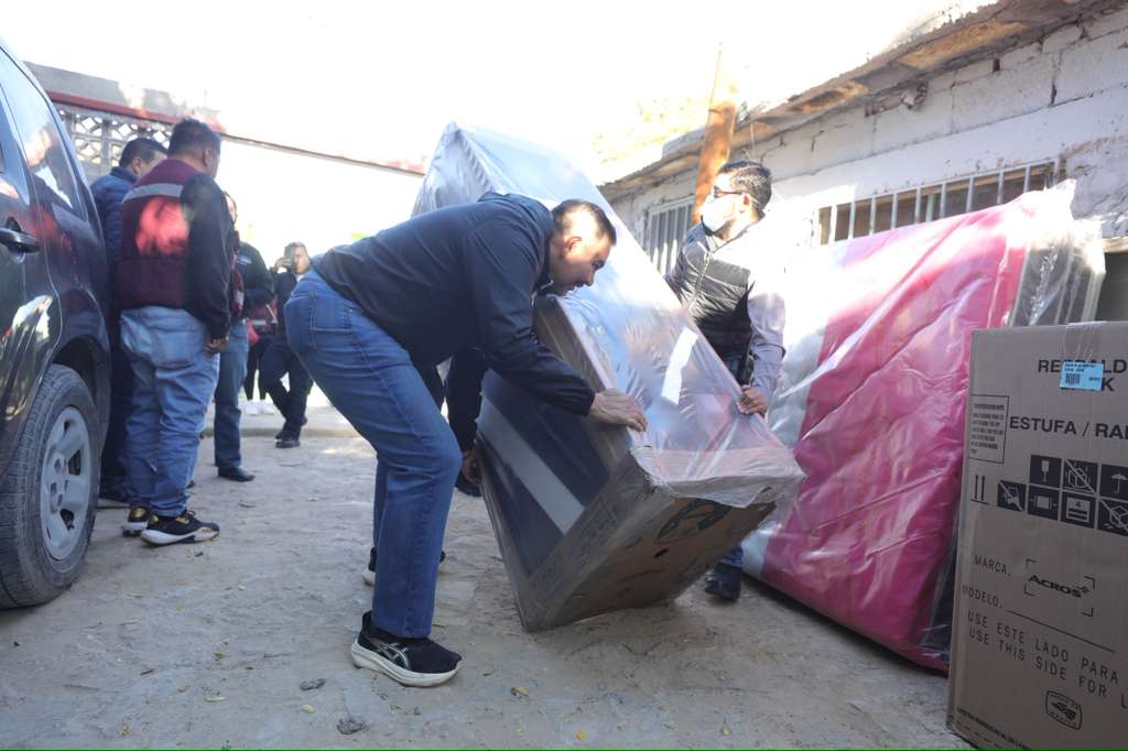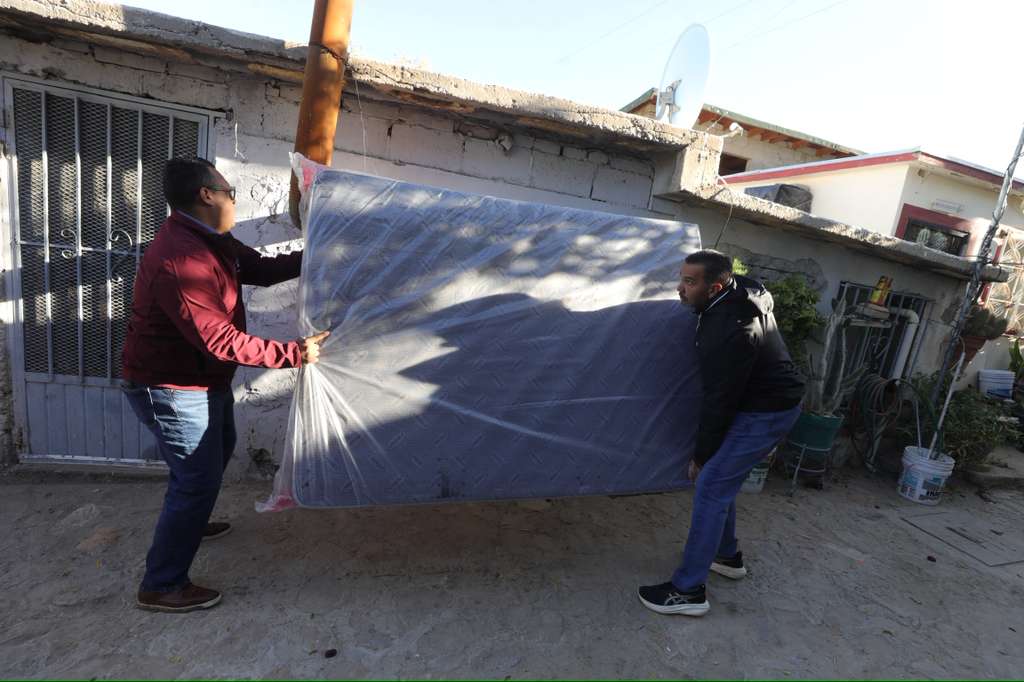 Además, se entregan 100 paquetes de menaje de casa que consta de colchón, base para colchón, refrigerador, estufa y otros artículos.