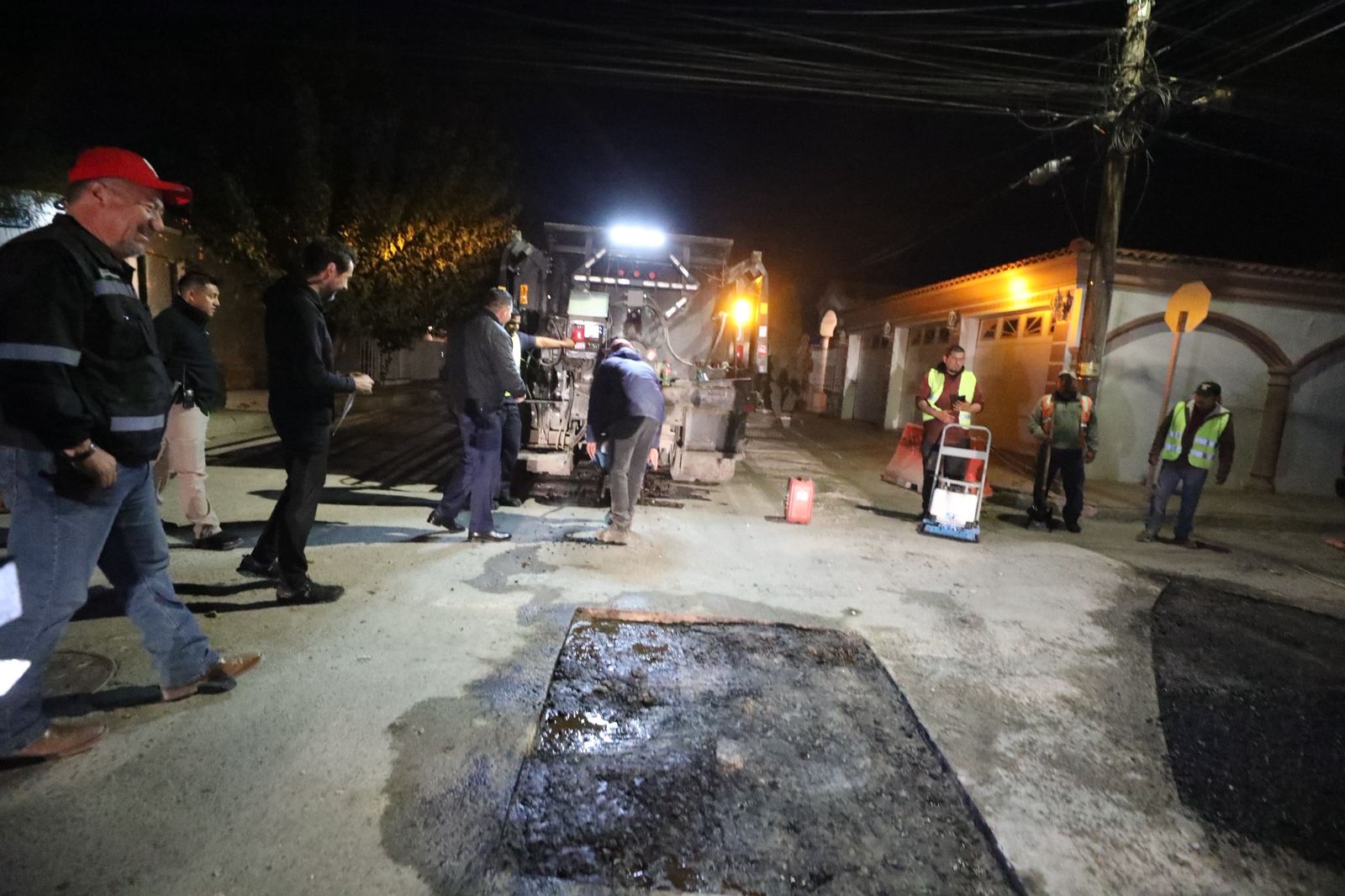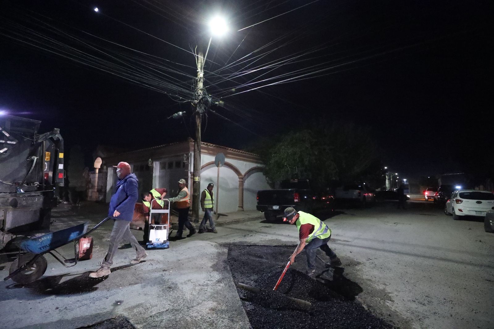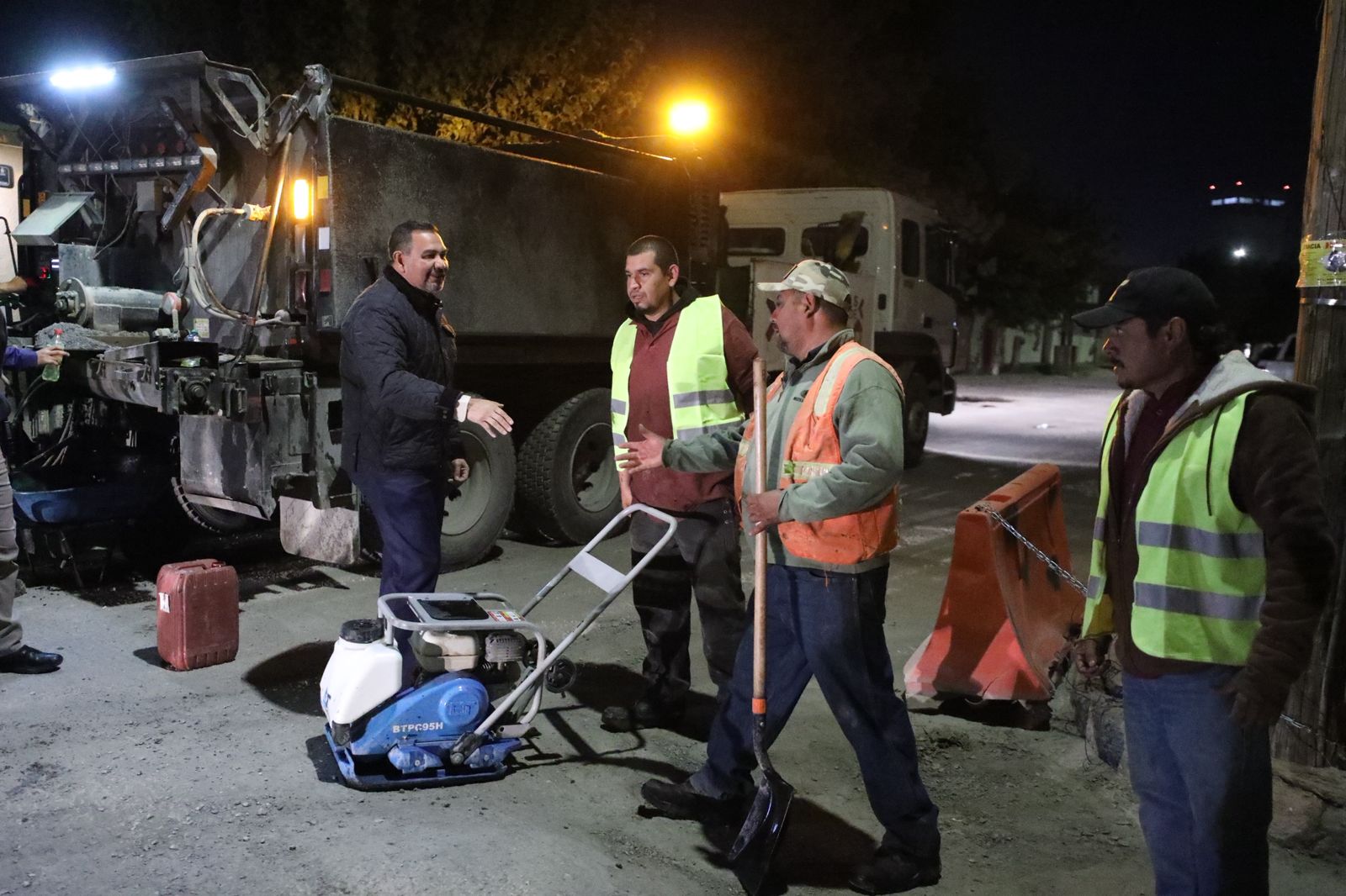 Esta noche el Presidente Municipal Cruz Pérez Cuéllar realizó una supervisión nocturna de trabajos de bacheo en la calle Venezuela y Aguilar Sáenz en la colonia Melchor Ocampo.