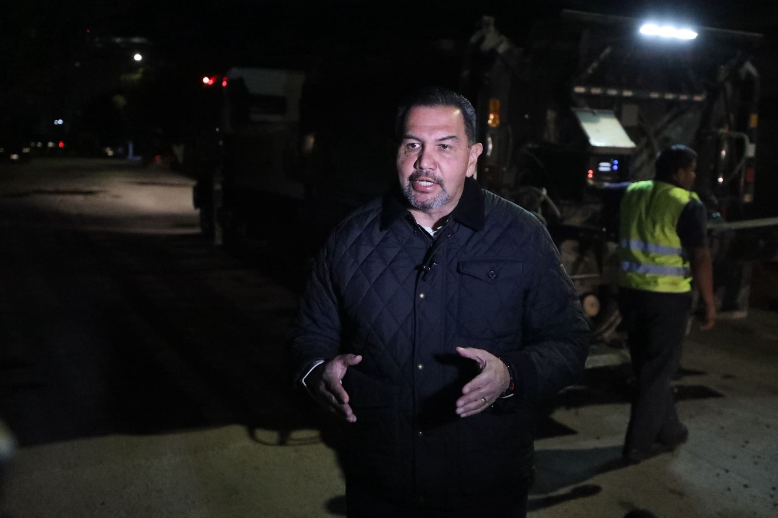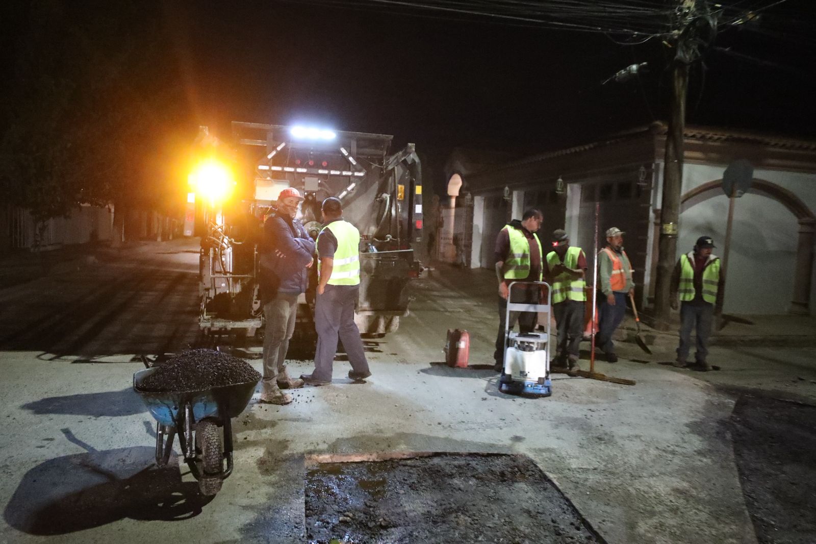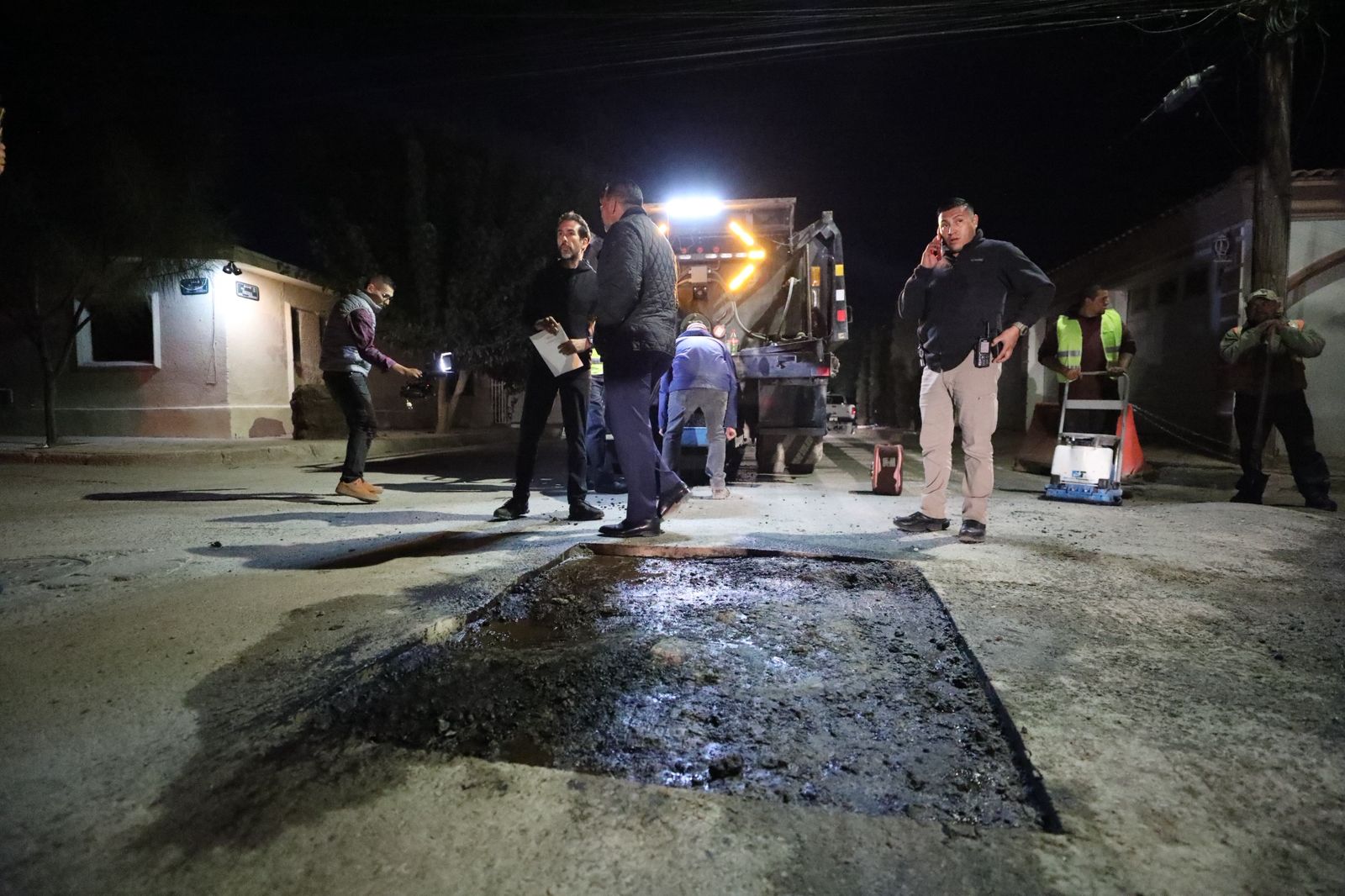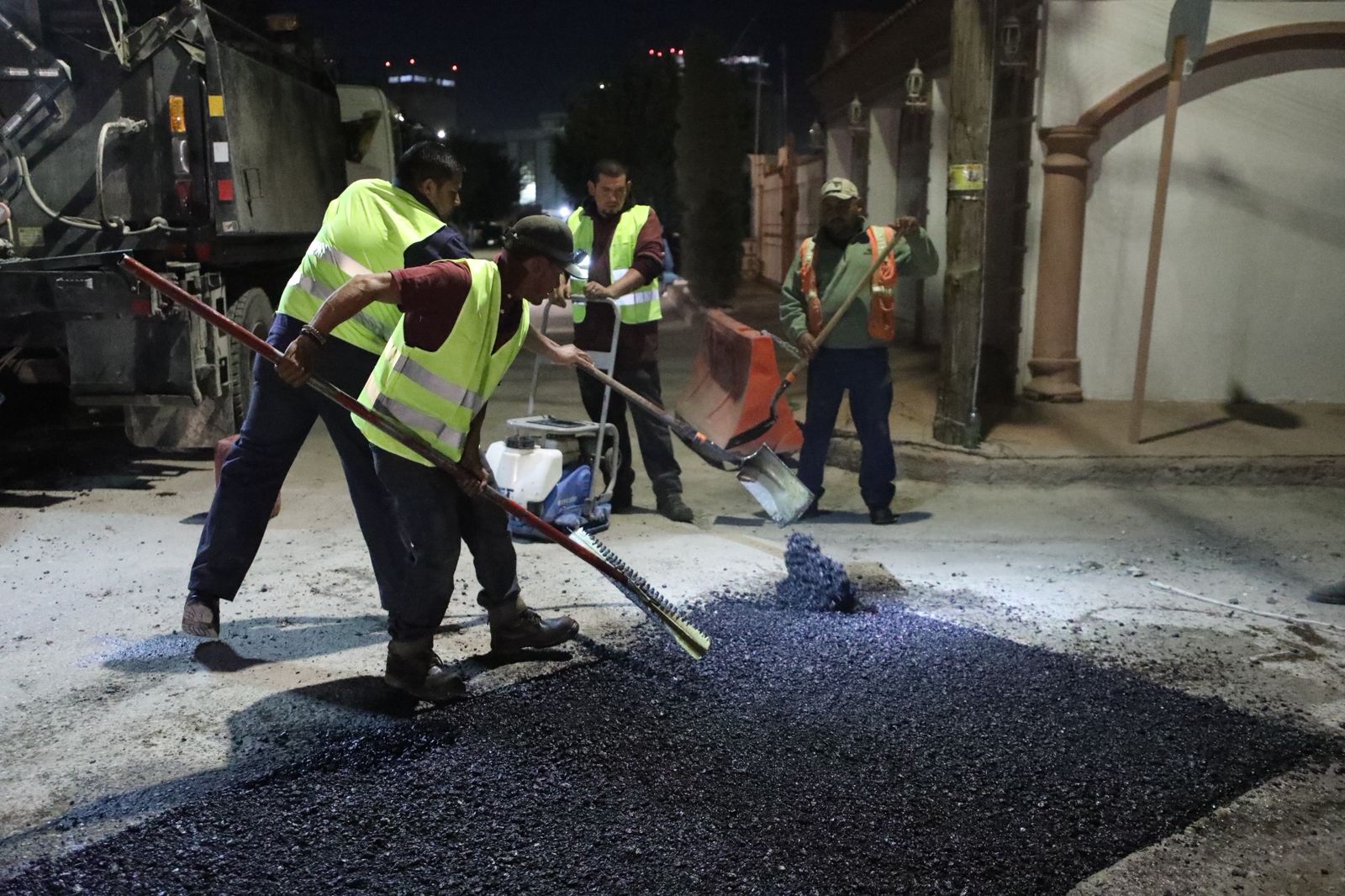 Esta noche el Presidente Municipal Cruz Pérez Cuéllar realizó una supervisión nocturna de trabajos de bacheo en la calle Venezuela y Aguilar Sáenz en la colonia Melchor Ocampo.