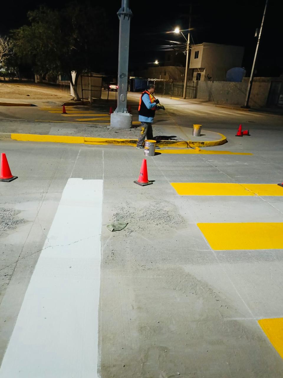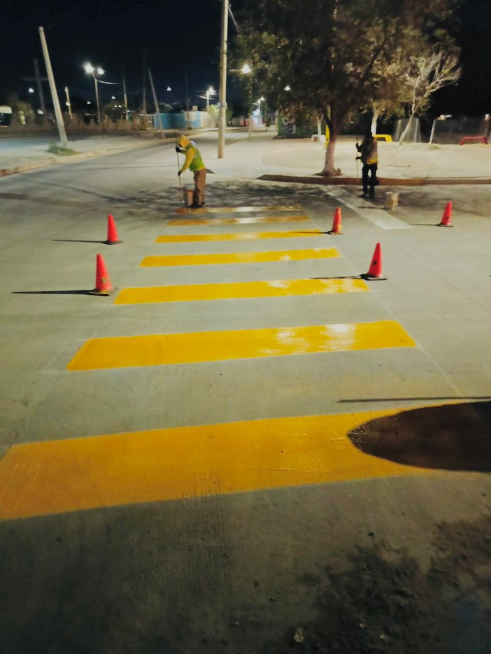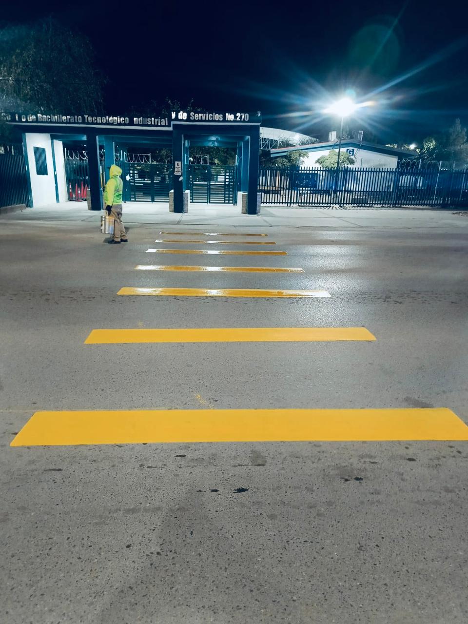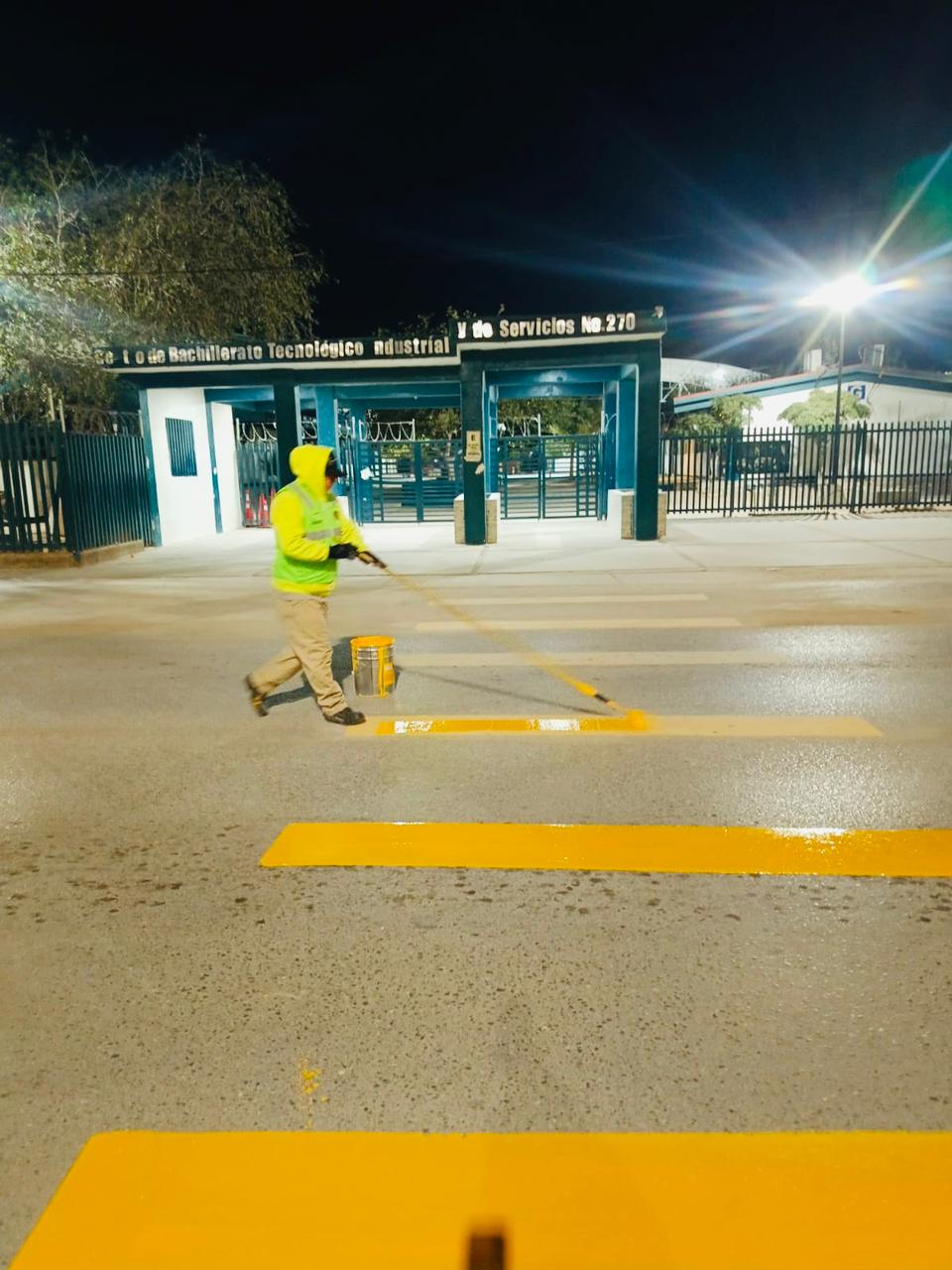 Las labores se efectuaron en la intersección de la calle Claudio de Lorena y calle Aéreo Juárez, así como en la calle Claudio de Lorena y calle Lucero dentro del fraccionamiento Parajes del Sol. De la misma manera, se realizaron trabajos de mantenimiento de pintura frente a las instalaciones del CBTis No. 270 que se ubica en el cruce de las calles Lote Bravo y calle Soneto No. 156 en la colonia Castillo Pereza.