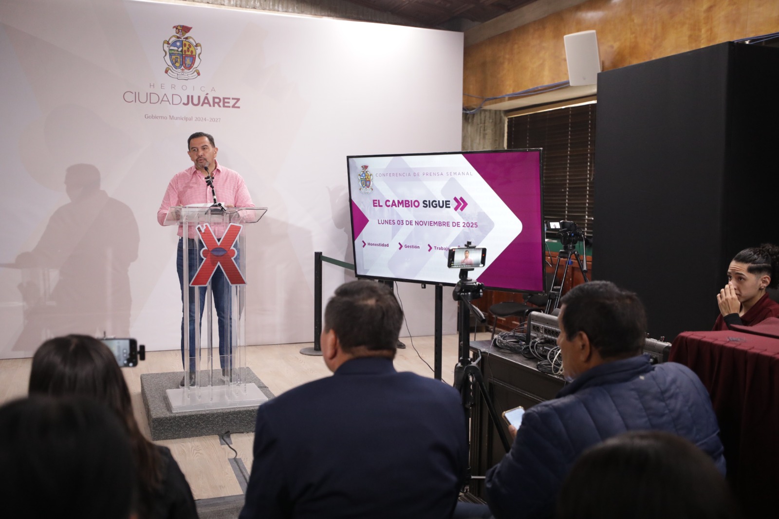 Durante la conferencia de prensa que ofrece cada semana en la sala Francisco I. Madero, de la Unidad Administrativa “Lic. Benito Juárez”, el Alcalde destacó que su Gobierno se enfocará en obra pública que será de gran beneficio para la comunidad juarense.
