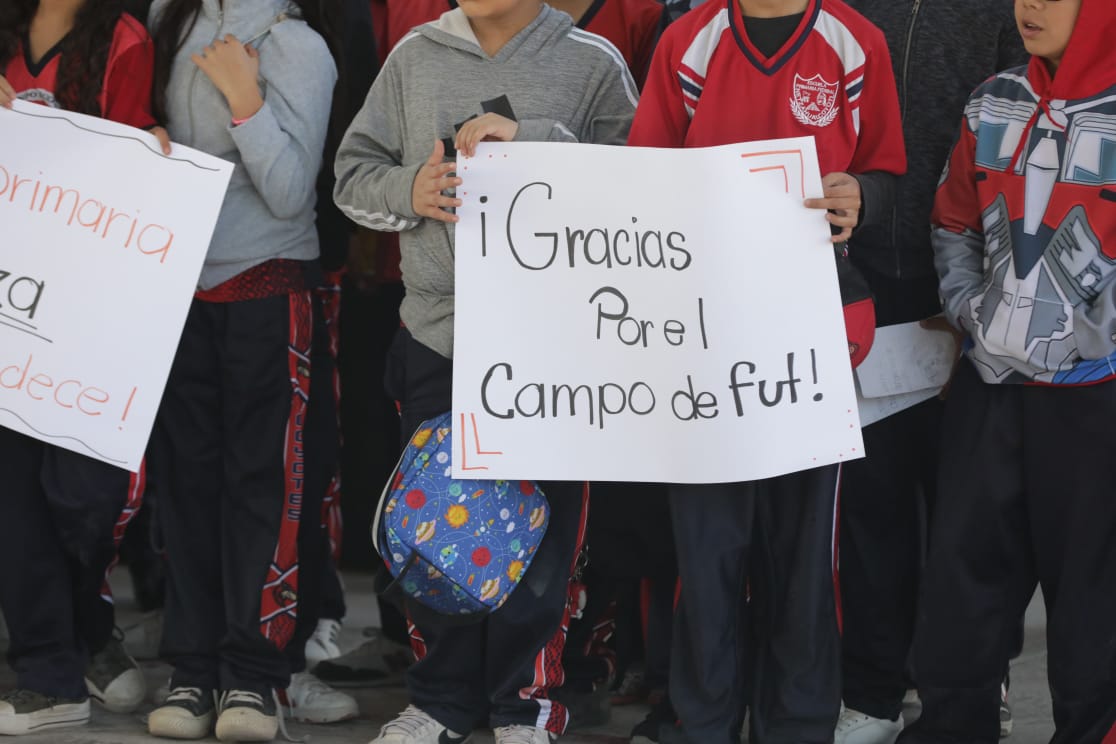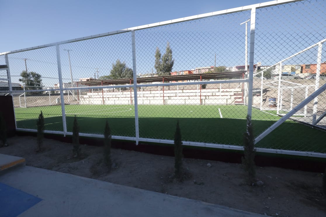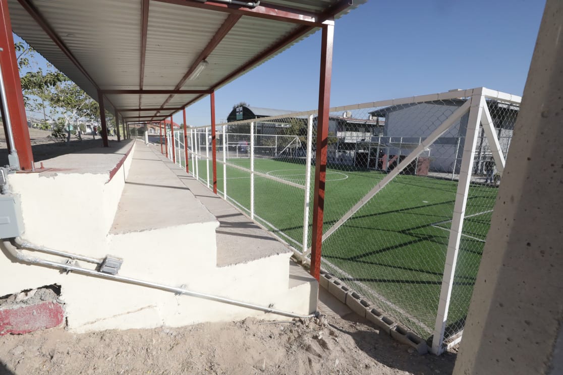 Comentó que en la Técnica Numero 86 se construyó la cancha de futbol, se trabajó en la rehabilitación de gradas con concreto y la instalación de techumbre; en la Escuela Primaria América se construyeron los baños, se instaló el portón eléctrico y se construyó la cafetería.