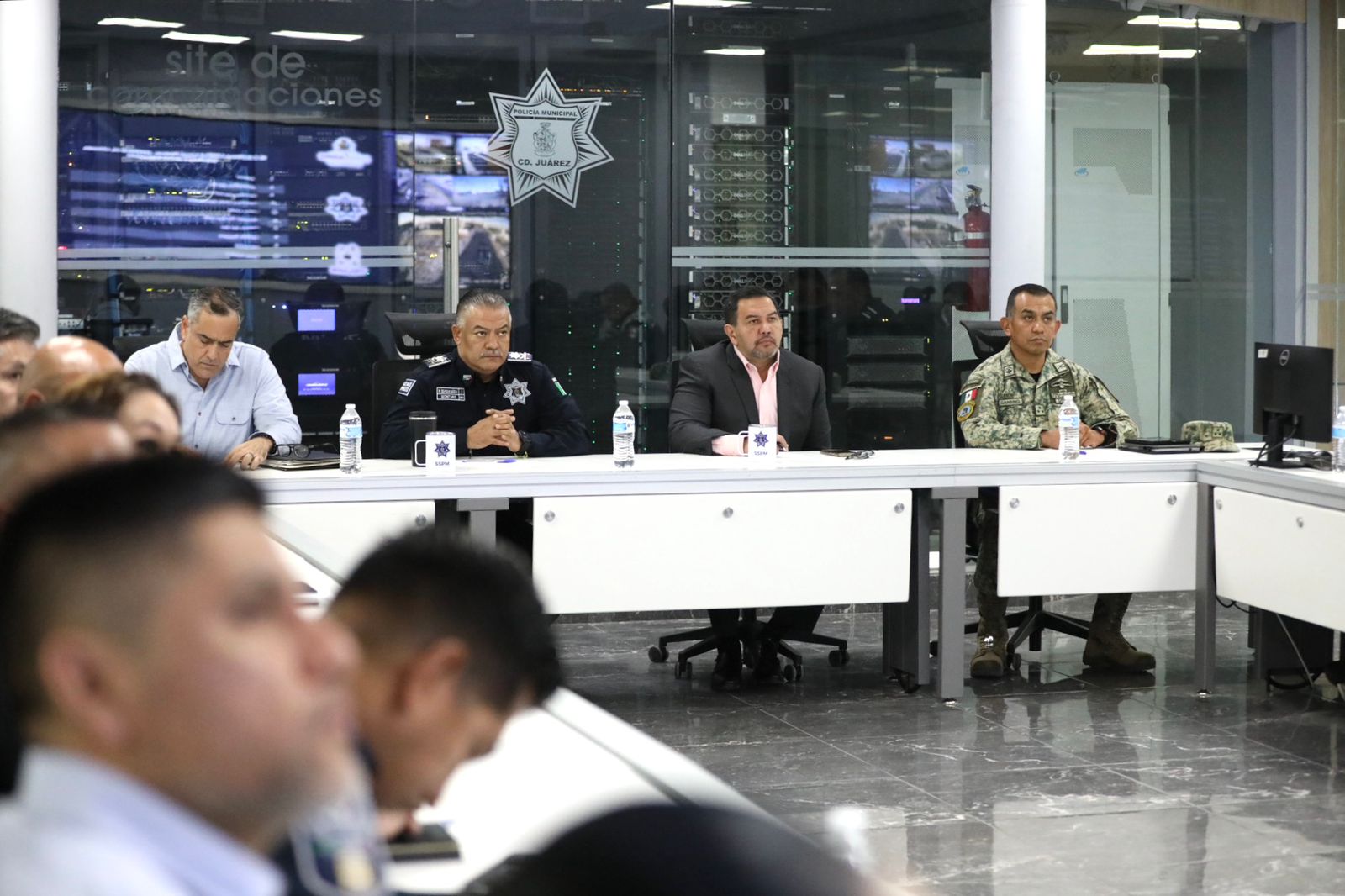 En la reunión participaron representantes del Sistema de Justicia Cívica Municipal, de la Fiscalía General del Estado, la Secretaría de Seguridad Pública Estatal, la Secretaría de la Defensa Nacional y la Guardia Nacional, fortaleciendo la coordinación operativa para garantizar la seguridad y el bienestar de las familias juarenses.