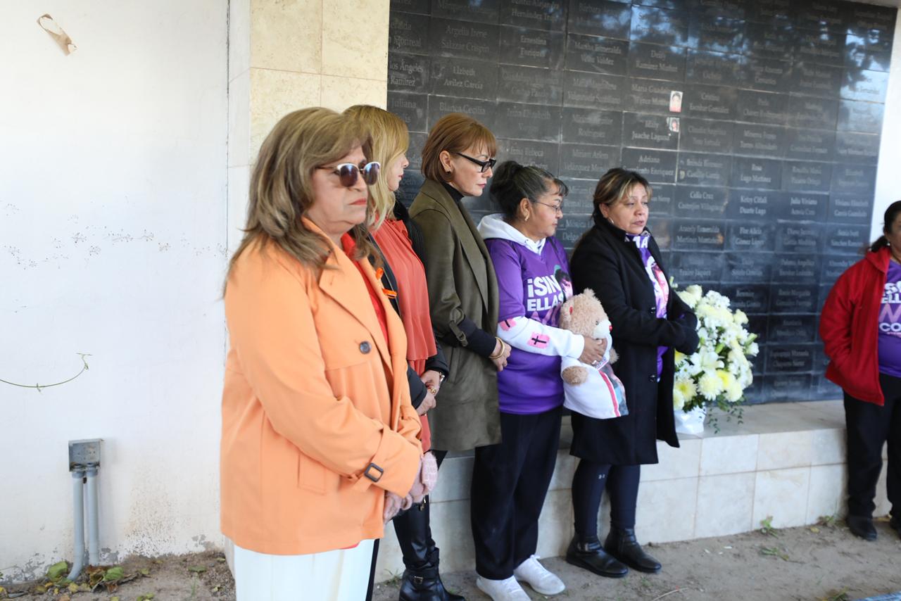 El acto concluyó con la colocación de la ofrenda floral y con el reconocimiento a las madres que han sostenido una lucha incansable para mantener viva la memoria de sus hijas y exigir justicia.