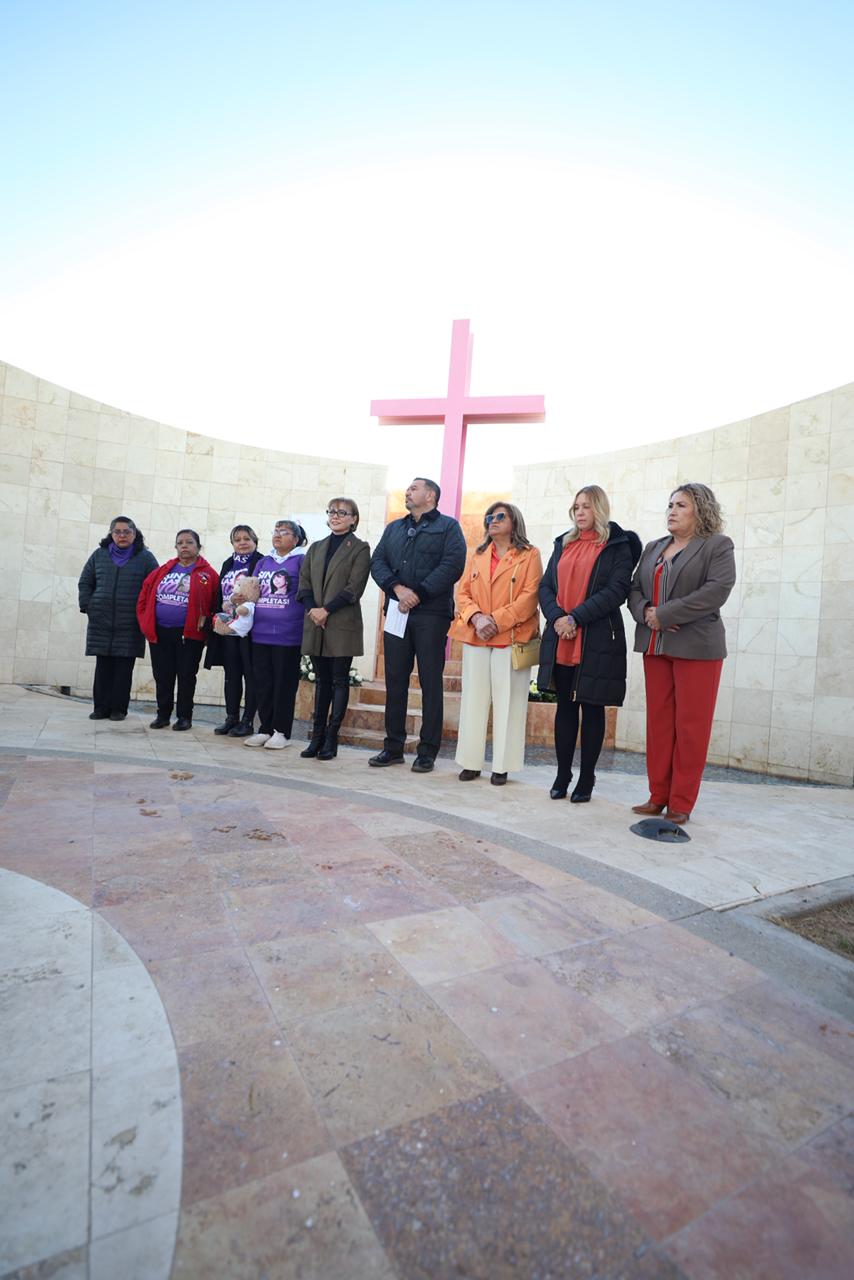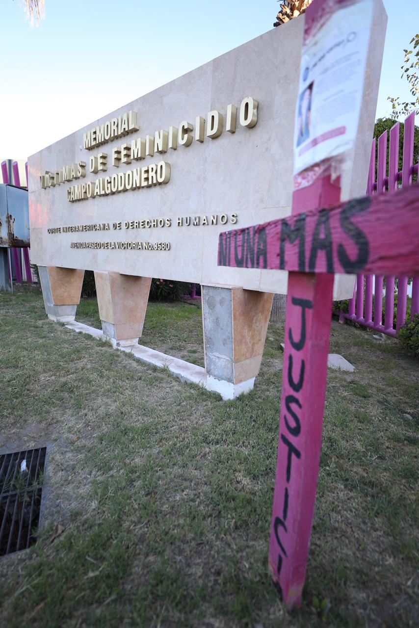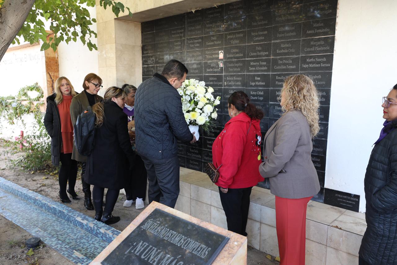 En el marco del Día internacional de la Eliminación de la Violencia Contra las Mujeres, el Presidente Municipal, Cruz Pérez Cuéllar, encabezó la colocación de una ofrenda floral en el Memorial del Campo Algodonero.