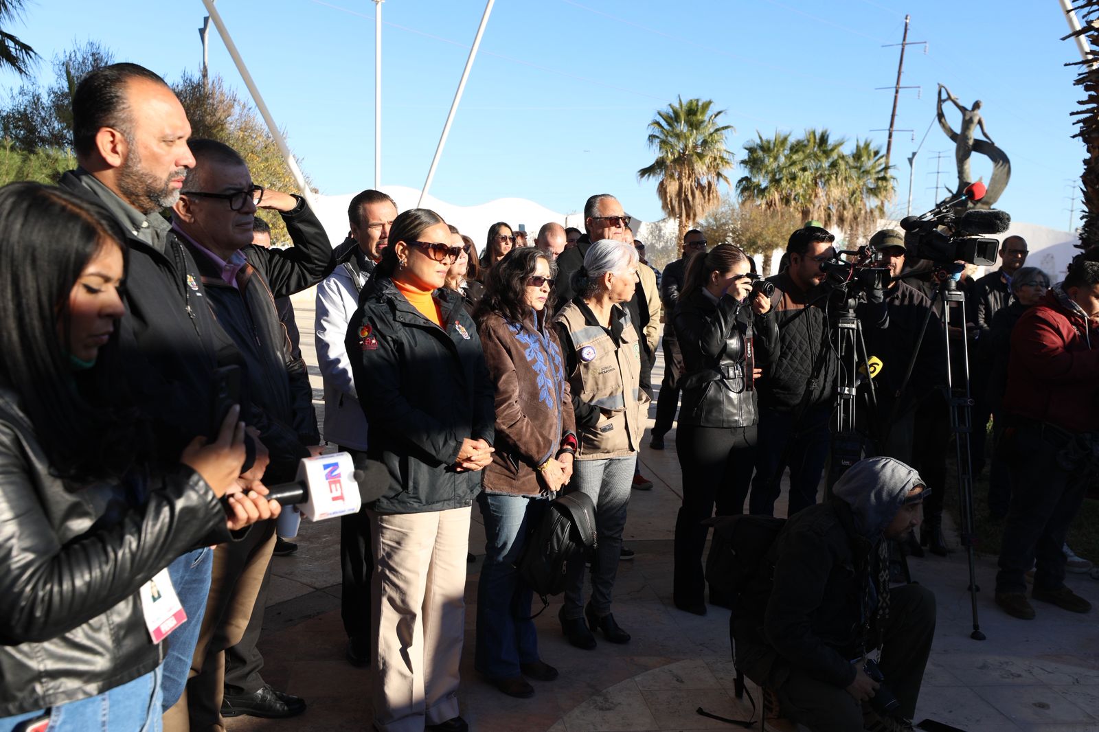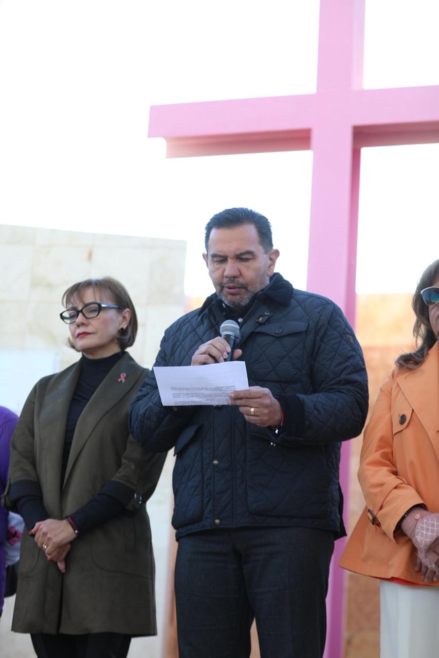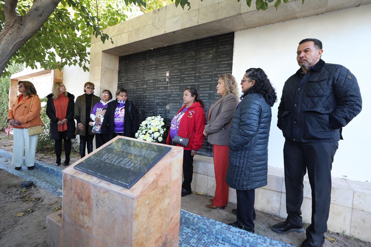 En el marco del Día internacional de la Eliminación de la Violencia Contra las Mujeres, el Presidente Municipal, Cruz Pérez Cuéllar, encabezó la colocación de una ofrenda floral en el Memorial del Campo Algodonero.