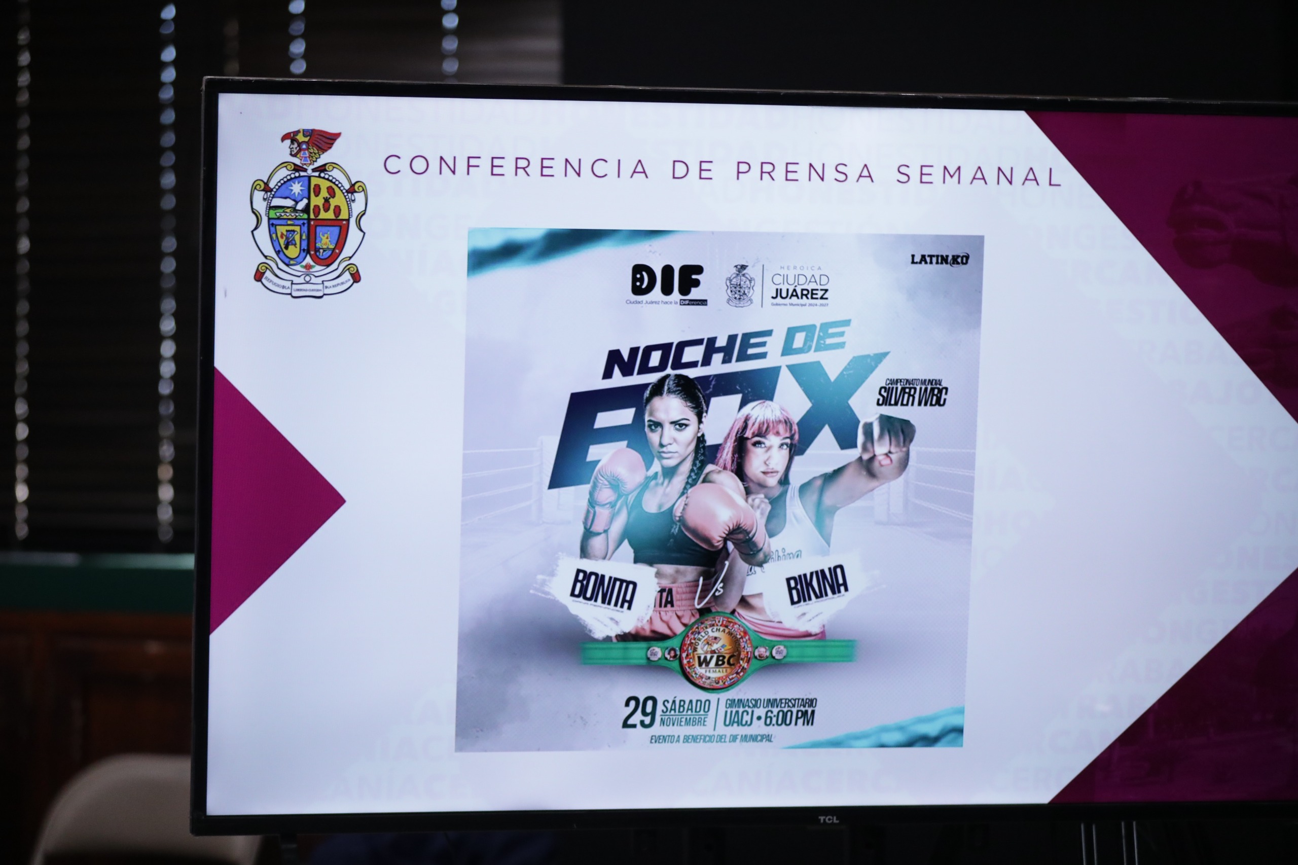 Durante la conferencia semanal del Presidente Municipal, Cruz Pérez Cuéllar, la consentida de Juárez Bonita Fernández, dedicó su pelea a todas las mujeres.