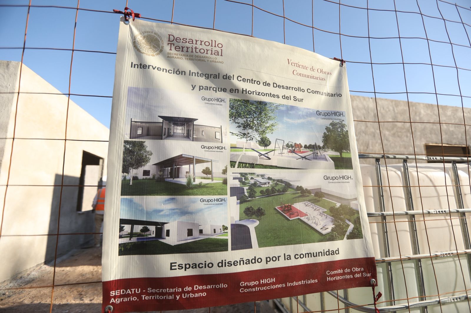 El parque además de área de juegos, ejercitadores, renovación de la cancha de futbol e iluminación, contará con su propio Centro Comunitario, por lo que el corredor central se adecuó para que su diseño quedara amplio, permitiendo así la integración social de todas y todos los habitantes de las cinco etapas de la colonia Horizontes del Sur.