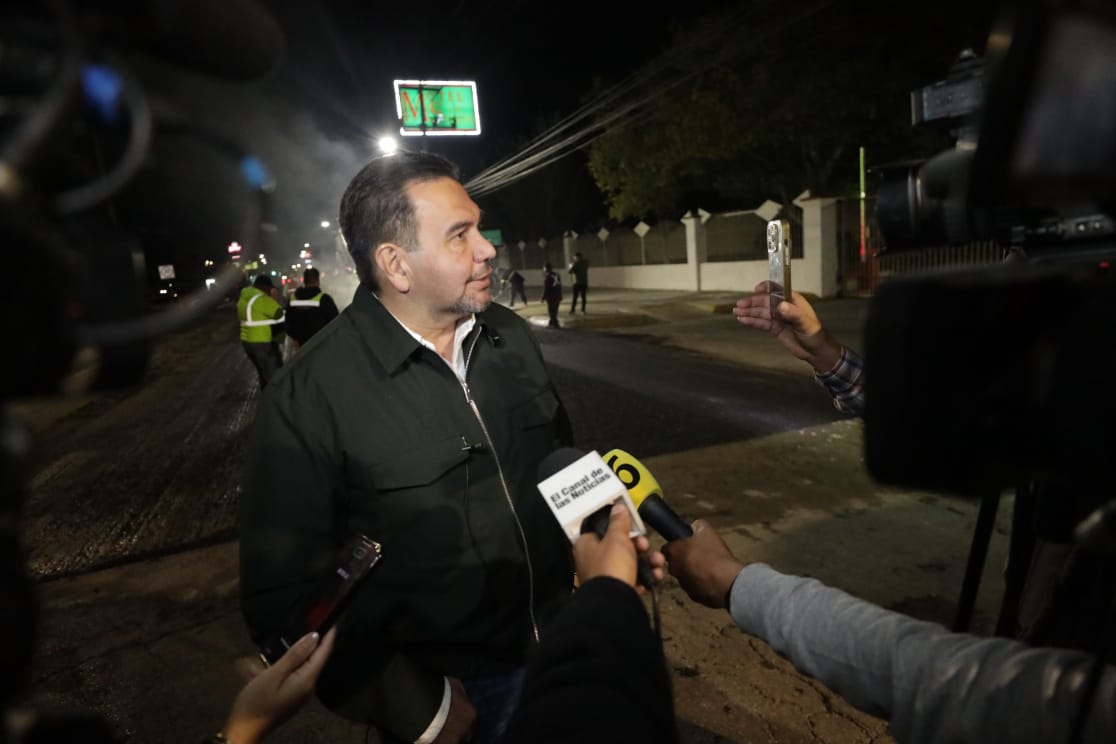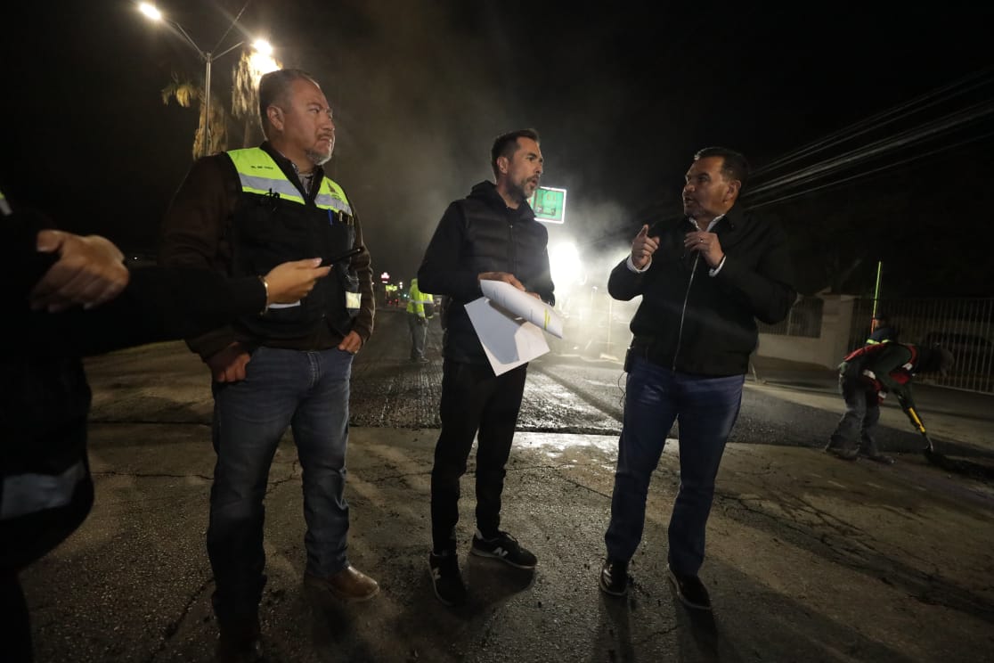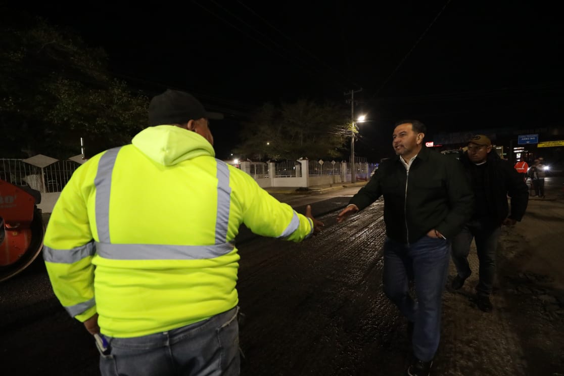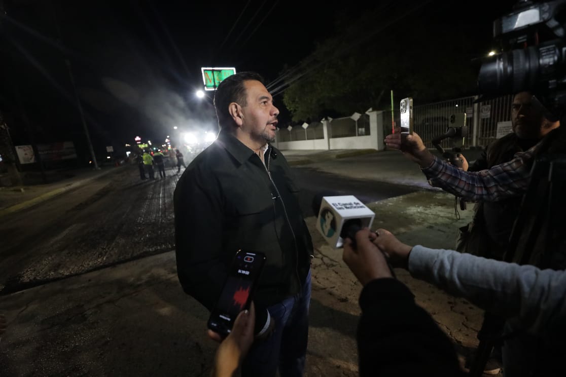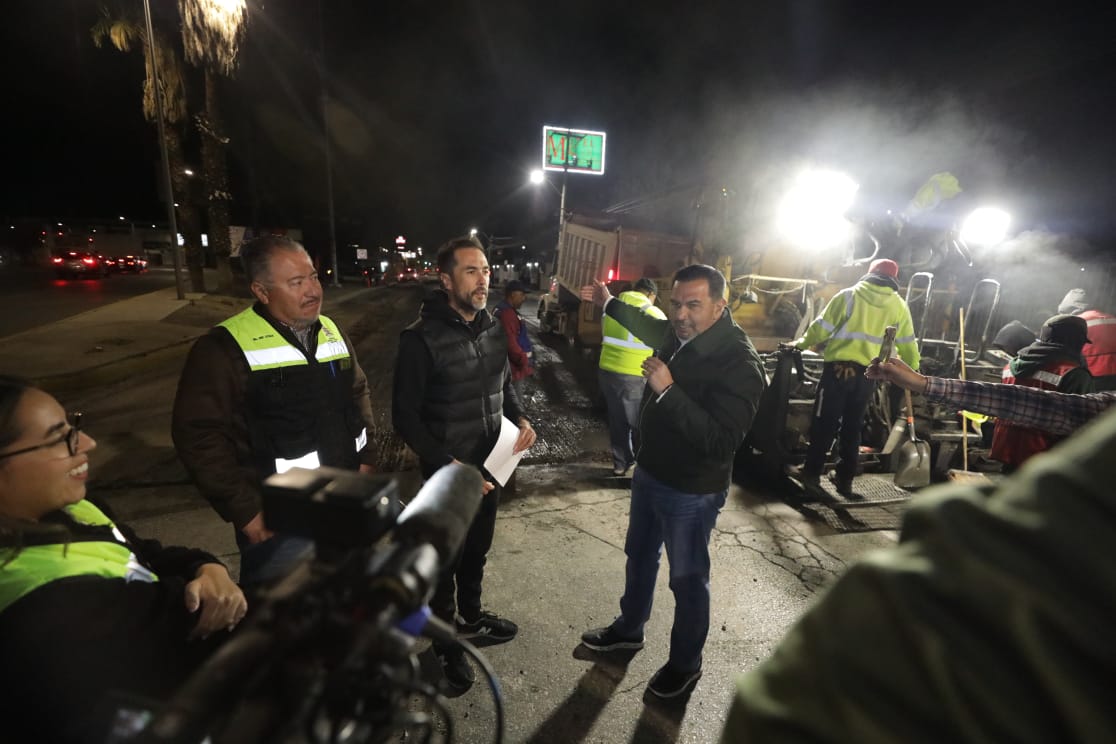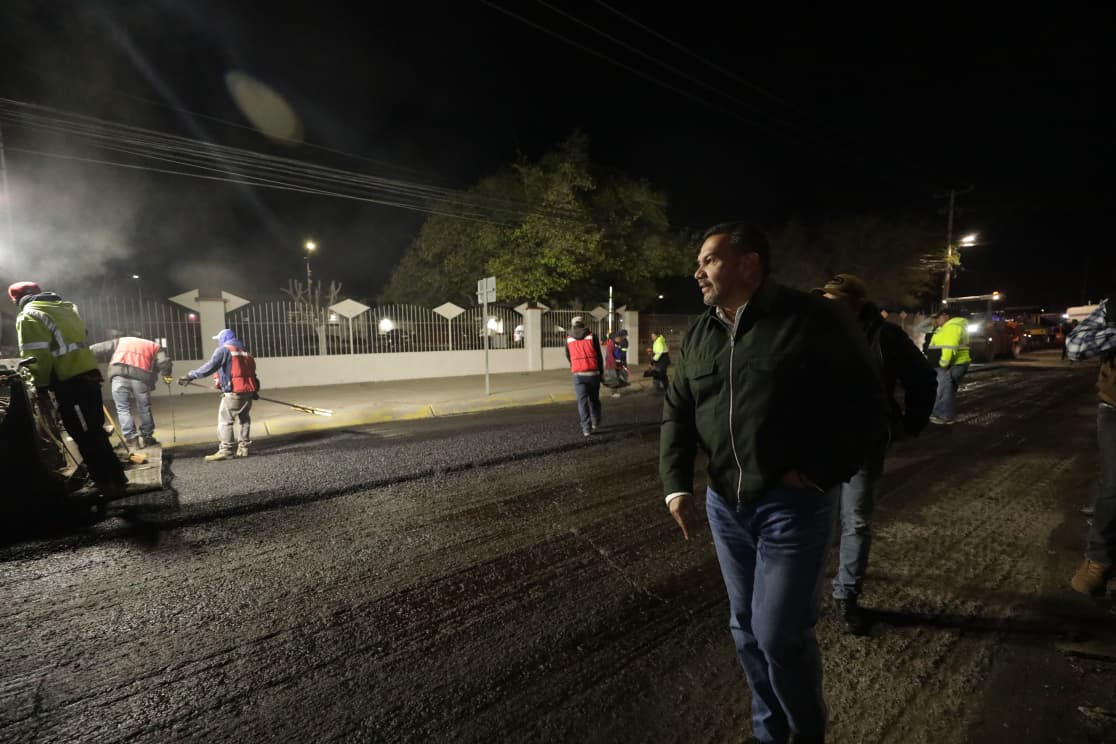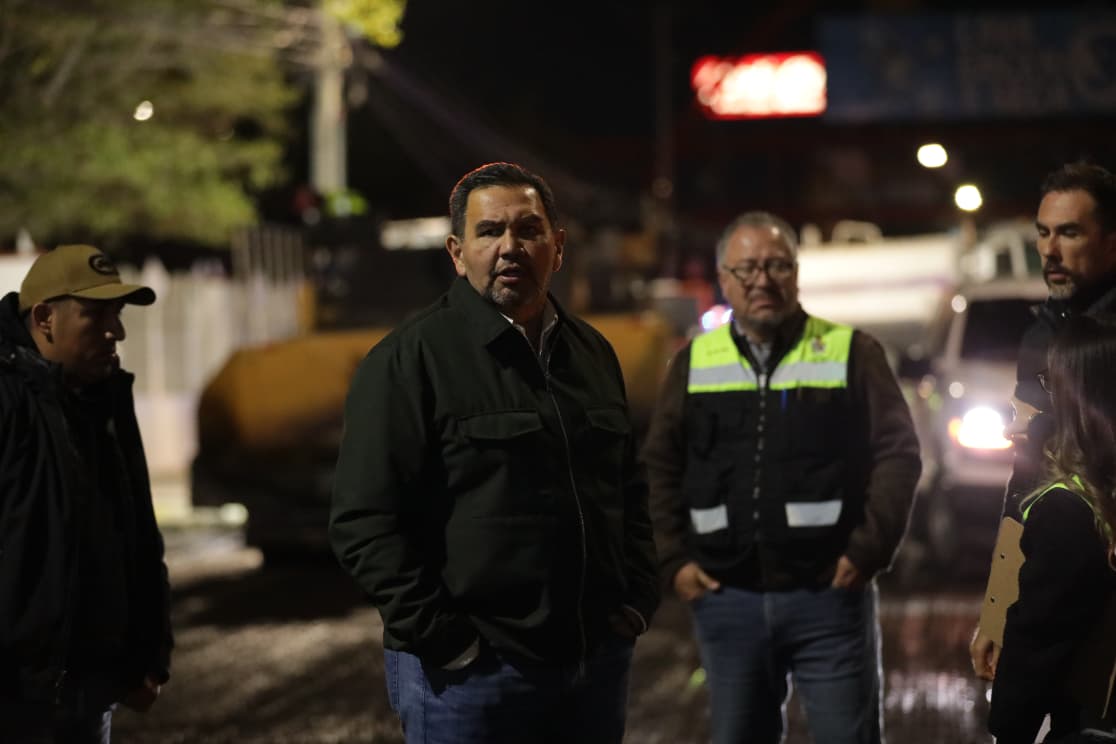El Presidente Municipal, Cruz Pérez Cuéllar, supervisó la noche del viernes los trabajos de repavimentación que se llevan a cabo en las avenidas Tecnológico y Rafael Pérez Serna, como parte del programa de mantenimiento de vialidades.