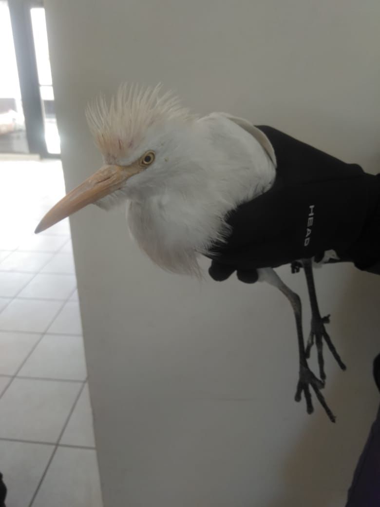 La garza se encontraba posiblemente en migración, estaba deshidratada y hambrienta, es un ave joven y en la adultez puede llegar a medir más de un metro, comentó Baylón.