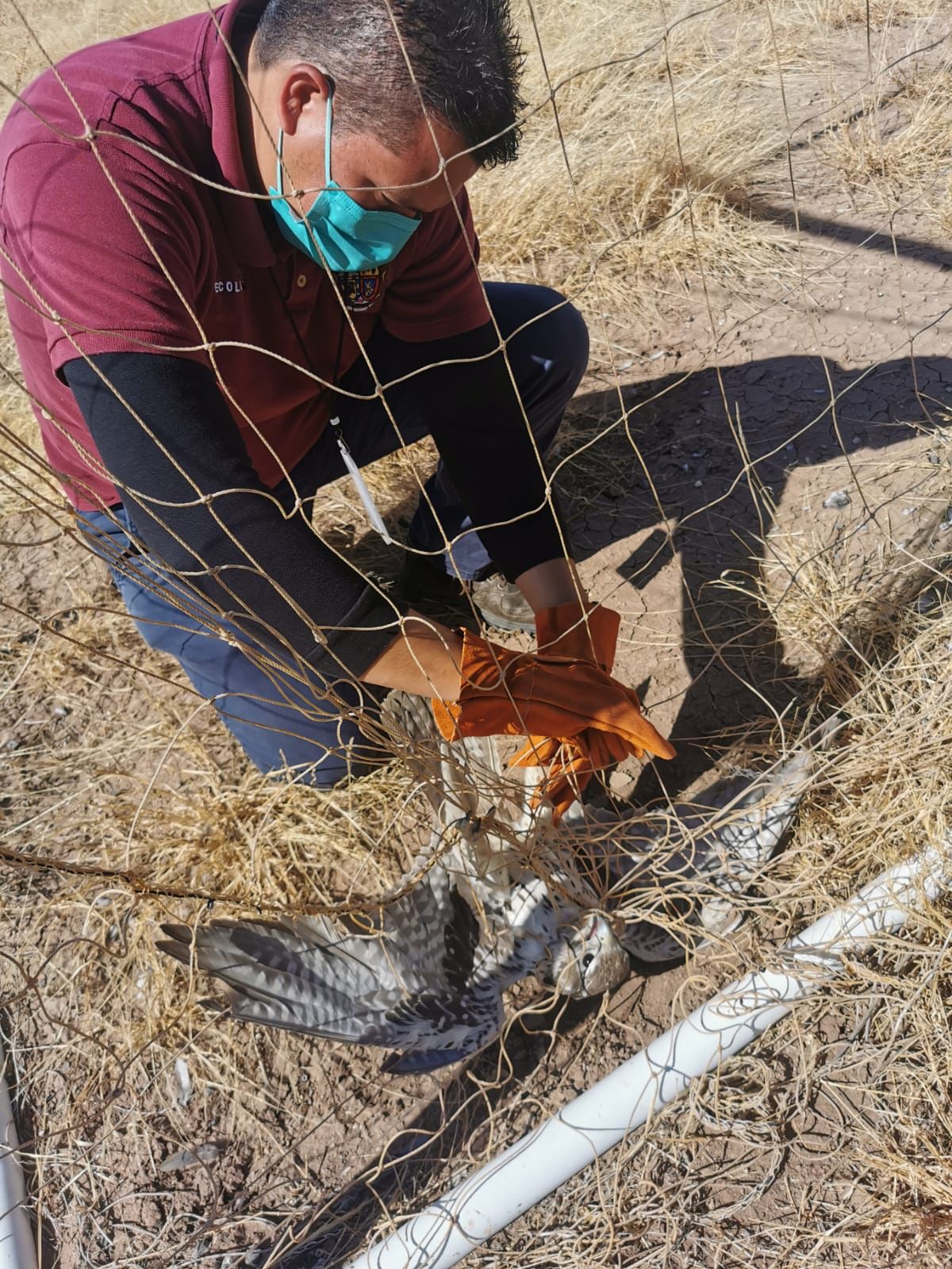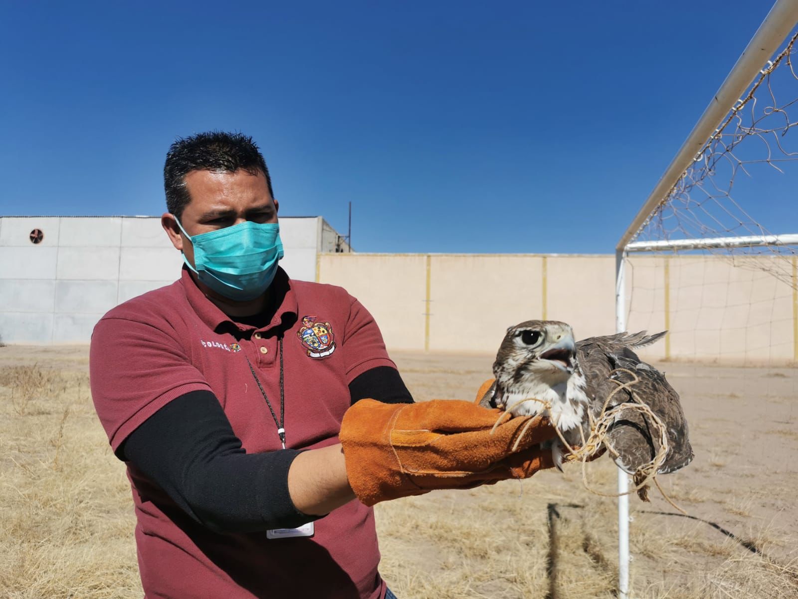 Una de estas aves es un halcón mexicano, que al pasar por un campo de fútbol de una empresa maquiladora, se enredó con la red de una portería y al querer escapar se fue enredando más, por lo que se hizo el llamado al personal del RAMM, quienes lo desataron y liberaron para resguardarlo y alimentarlo antes de dejarlo libre.