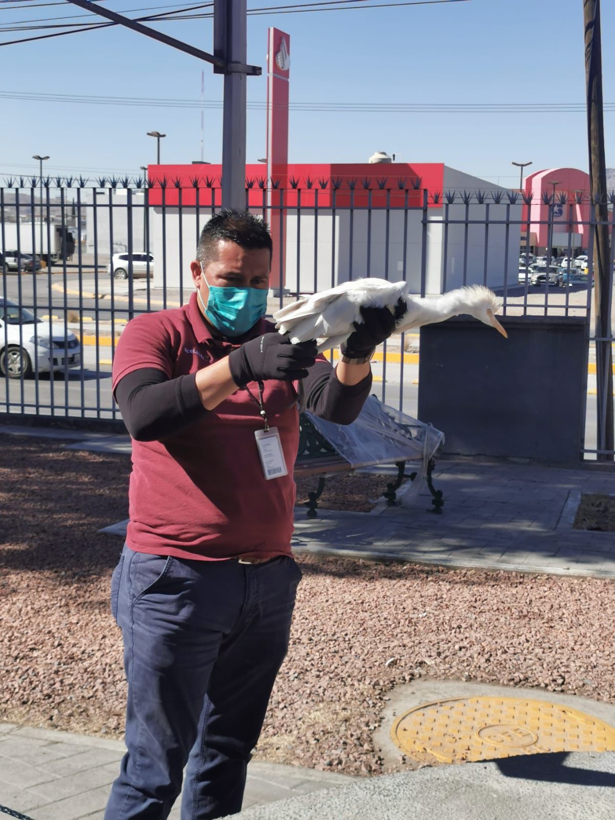 El otro caso es el de una garza blanca, la cual se enredó en cables y cordones quedando atascada en un pino al interior también de una maquiladora; el personal de la empresa intentó rescatarla en lo que llegaba el personal del RAMM, quienes la aseguraron.